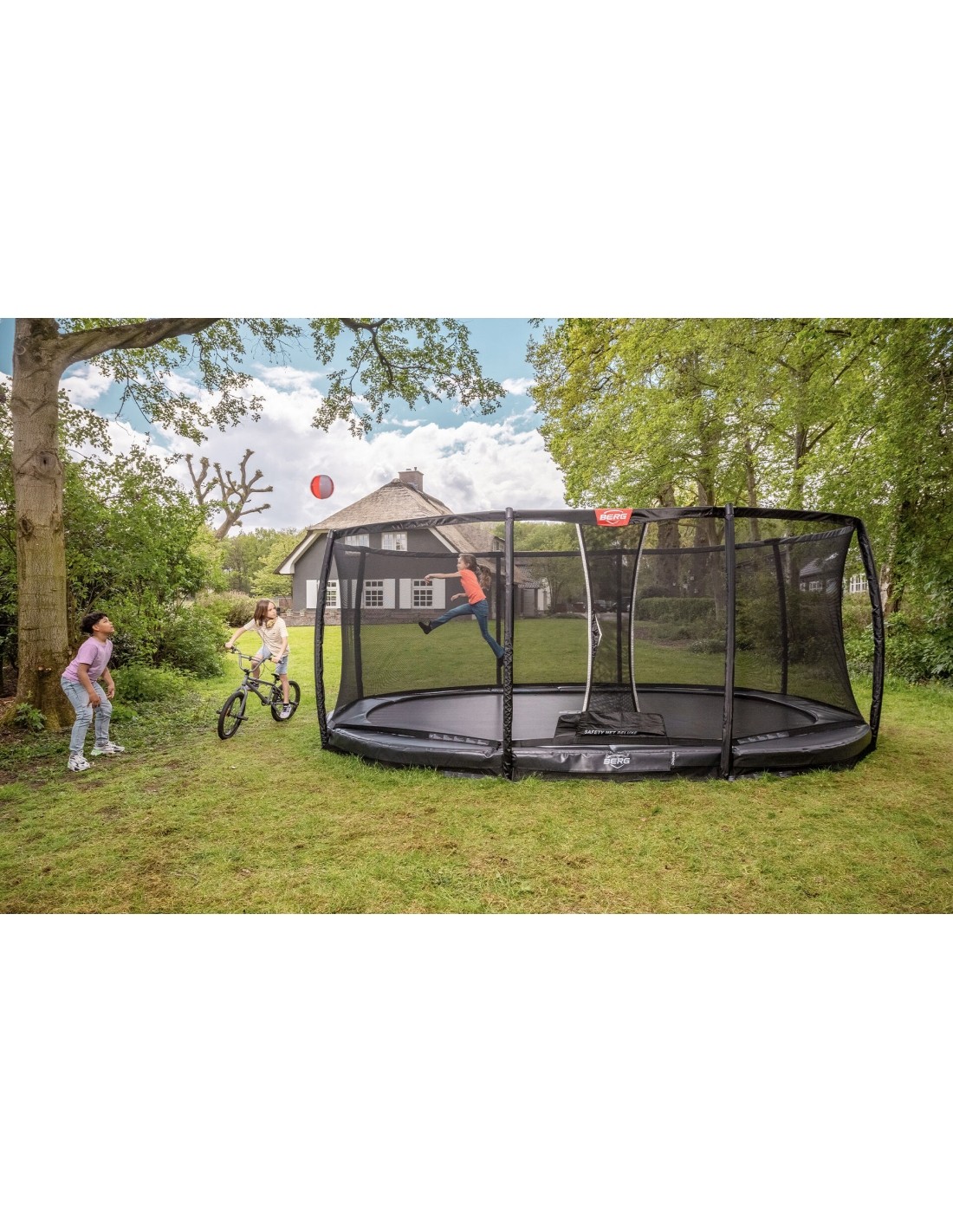 Skakanie na trampolinach to radosne doświadczenie, ale najważniejsze jest bezpieczeństwo. Z tego powodu BERG kładzie duży nacisk na testowanie swoich produktów. Wysokie i solidne siatki BERG gwarantują bezpieczne skakanie, nawet jeśli skacze się najwyżej, jak to możliwe. Wszystkie produkty BERG mają najwyższe międzynarodowe certyfikaty bezpieczeństwa. BERG przeprowadza niezależne testy TUV, Intertek i AiB Vincotte oraz testuje odporność materiałów na warunki pogodowe. Trampoliny są wyposażone w bardzo mocne maty do skakania (odporne na promieniowanie UV i przemakanie), umocowane na solidnych sprężynach. Krawędzie są idealnie dopasowane do maty, co zwiększa bezpieczeństwo i komfort skakania. Dzięki wzmocnieniu spawów ramy oraz zastosowaniu stalowych połączeń, konstrukcja jest jeszcze bardziej stabilna. Wszystkie metalowe elementy są ocynkowane wewnątrz i na zewnątrz, dzięki czemu nie rdzewieją.
