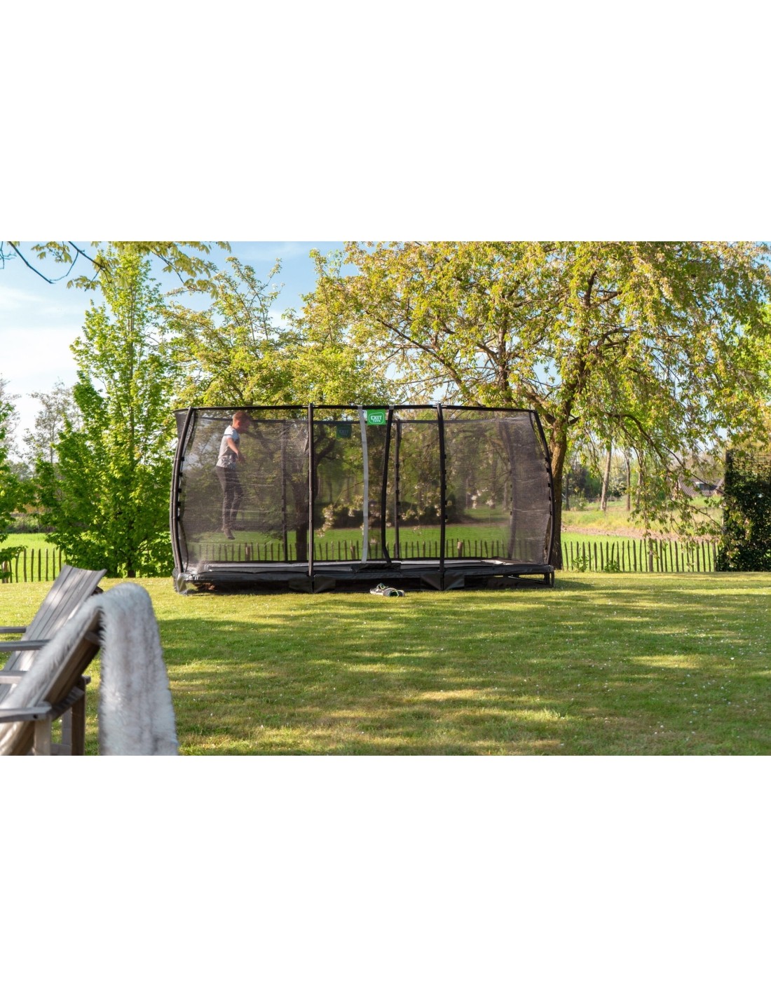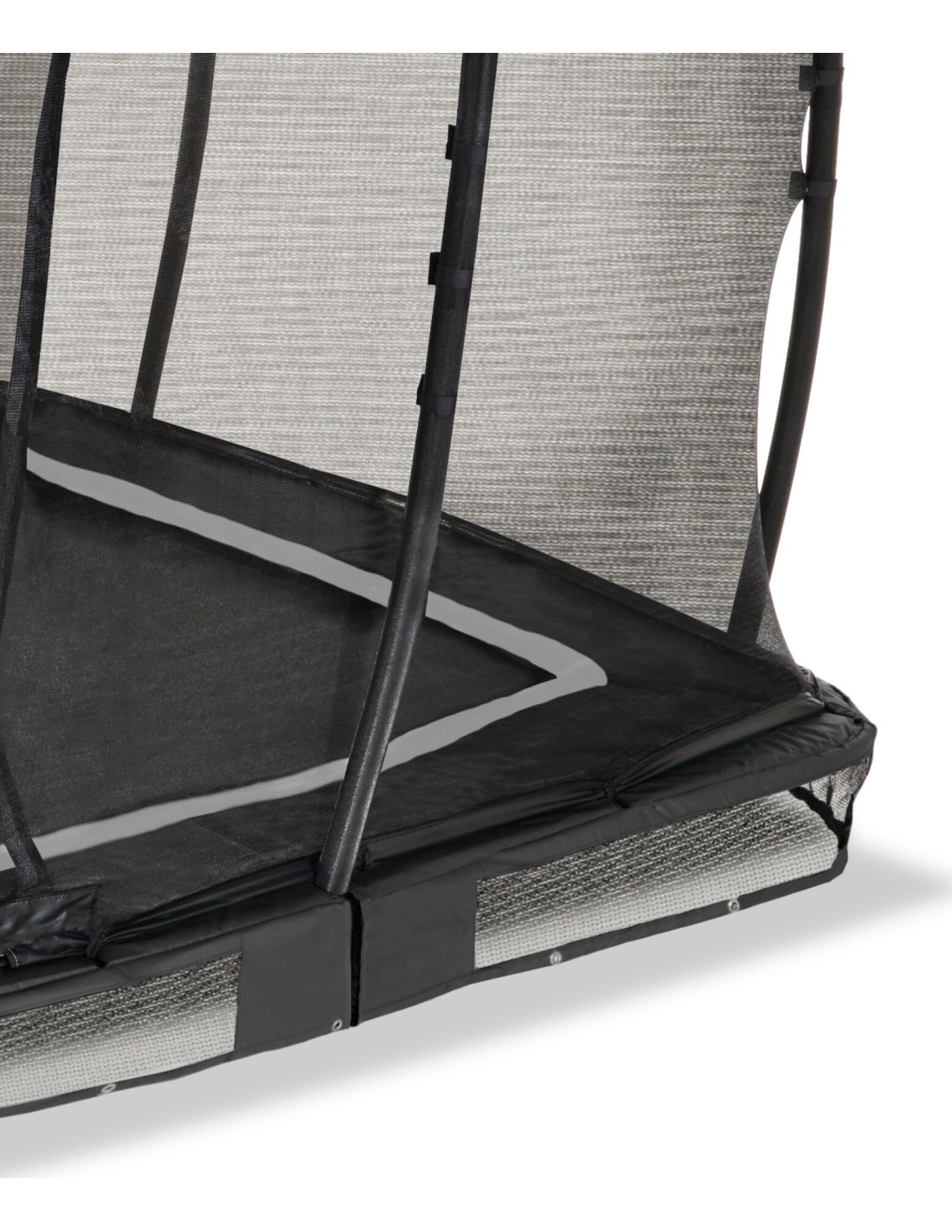 Trampolina naziemna EXIT Allure Premium to trampolina naziemna z wyściełaniem i siatką zabezpieczającą Premium. Dzięki EXIT Foot Protection System (FPS) i siatce między matą do skakania a wyściełaniem trampoliny, skoczkowie nigdy nie mogą złapać swoich stóp między sprężynami. Trampolina ziemna Allure jest częściowo wkopana i tak łatwo dostępna dla każdego. Do trampoliny dołączona jest siatka ochronna Premium, która ma nakładaną klapę, która zamyka się automatycznie, dzięki czemu nigdy nie pozostaje niezauważona. Słupy siatki bezpieczeństwa Premium są pokryte wysokiej jakości pianką XPE. Bardzo długie podwójne sprężyny stożkowe o długości nie mniejszej niż 21,6 cm zapewniają idealny skok i miękkie lądowanie. Rama trampoliny jest ocynkowana i malowana proszkowo, co zapewnia jej długą żywotność. Podczas gdy pierścienie z włókna szklanego i zakrzywione słupy utrzymują siatkę bezpieczeństwa w super-taktycznym kształcie, bardzo gruba wyściółka z wodoodporną warstwą wierzchnią z pcv zapewnia Tobie i trampolinie maksymalną ochronę.