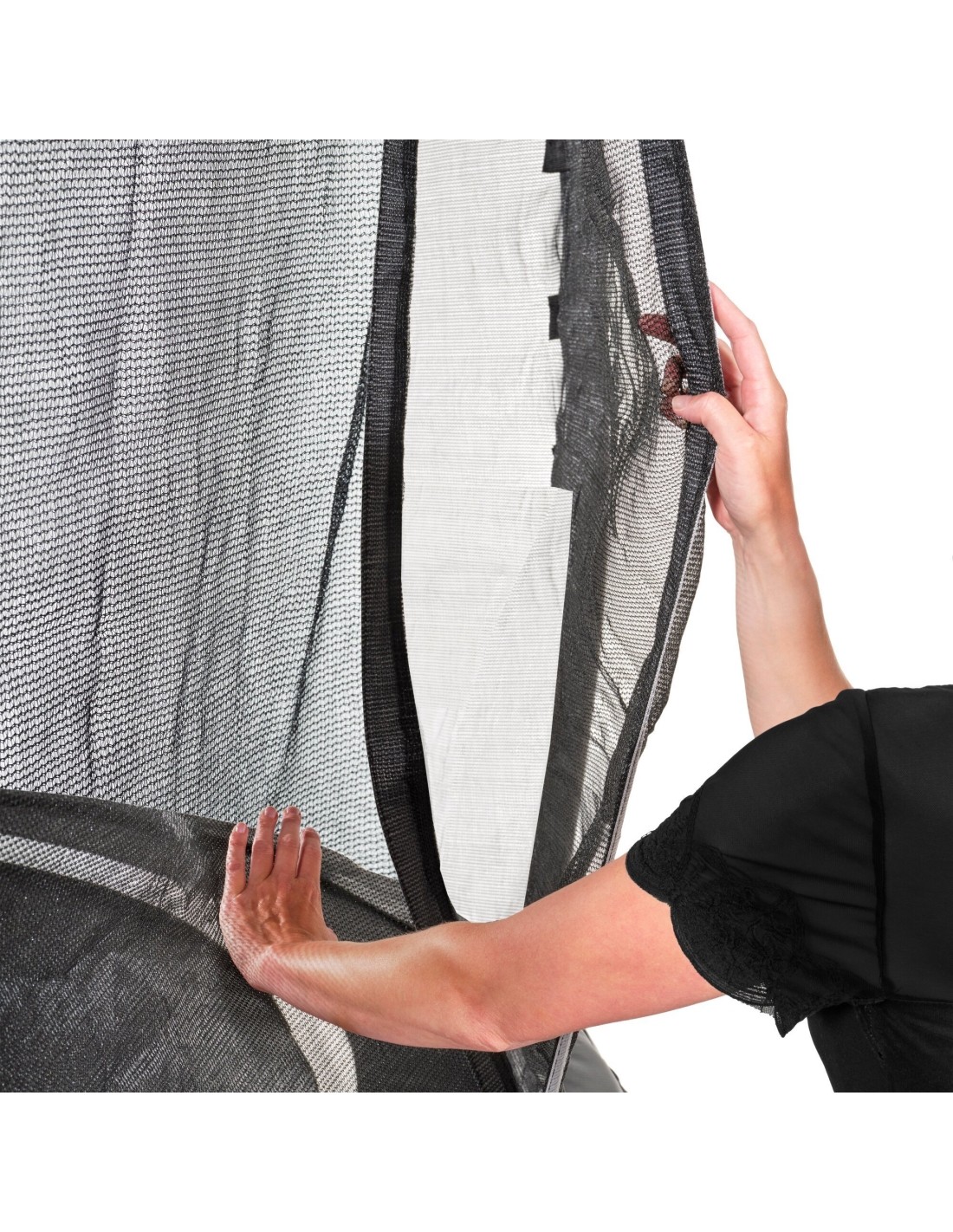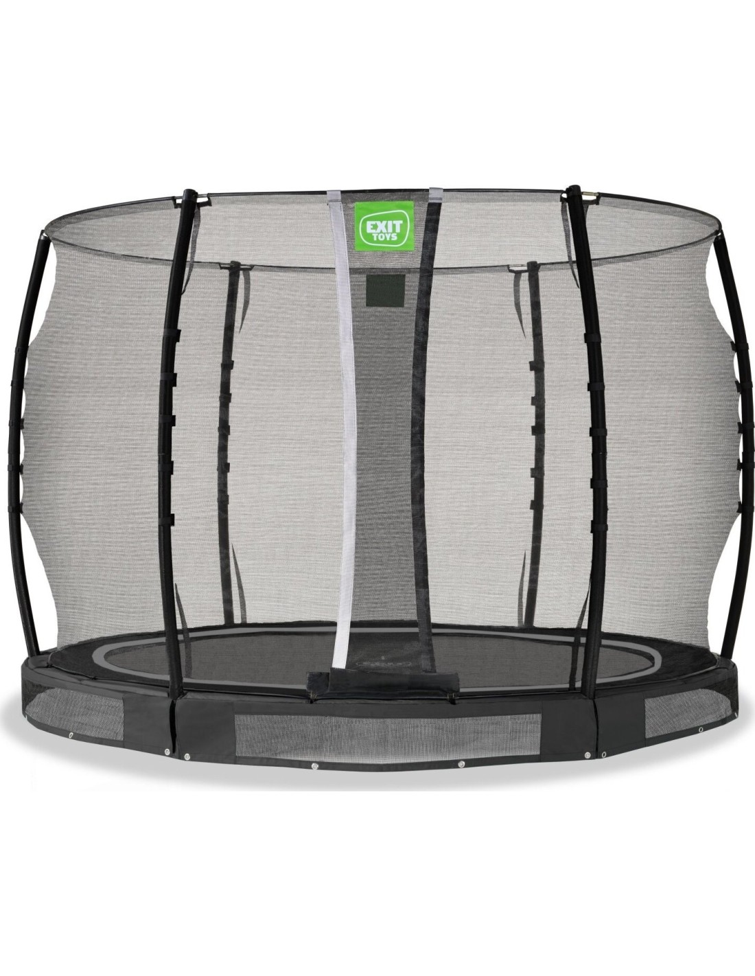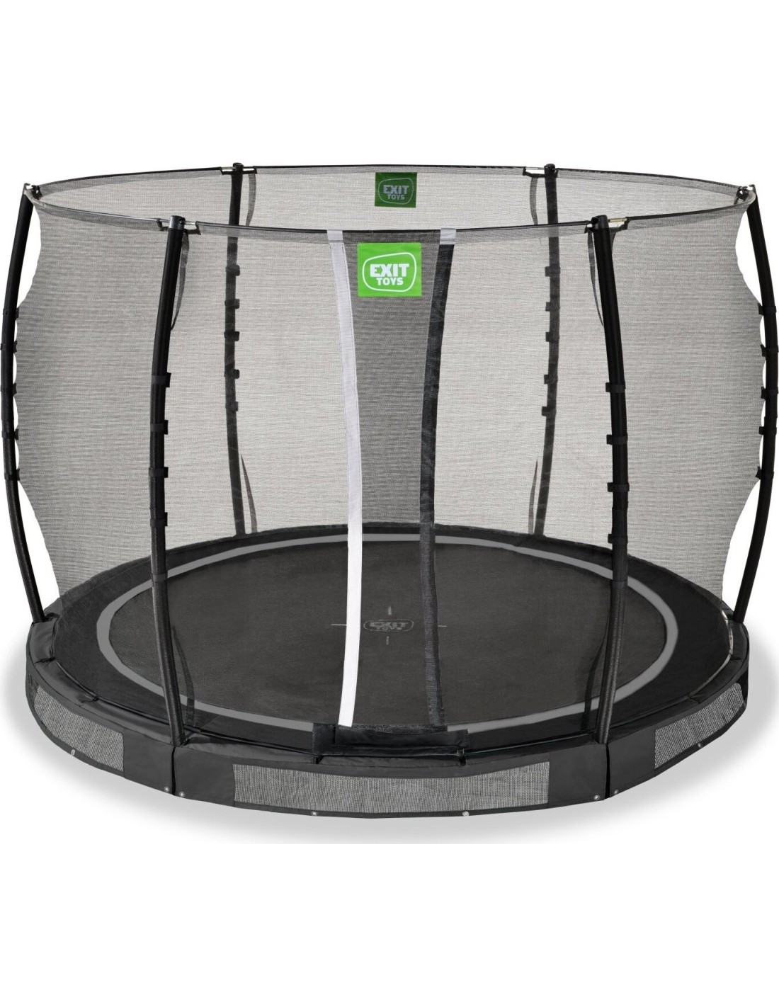 Trampolina naziemna EXIT Allure Classic to trampolina naziemna z wyściełaniem i siatką zabezpieczającą. Dzięki systemowi EXIT Foot Protection System (FPS) i siatce pomiędzy matą do skakania a obiciem trampoliny, skoczkowie nigdy nie mogą złapać swoich stóp pomiędzy sprężyny. Trampolina ziemna Allure jest częściowo wkopana, dzięki czemu jest łatwo dostępna dla każdego. Trampolina jest również dostarczana z siatką bezpieczeństwa, która ma nakładaną klapę, która zamyka się automatycznie, więc nigdy nie jest pozostawiona otwarta niezauważona. Słupki siatki zabezpieczającej są pokryte pianką. Rama trampoliny jest ocynkowana i malowana proszkowo, co zapewnia jej długą żywotność. Ponadto obicie tej trampoliny ma ochronną, wodoodporną, wierzchnią warstwę pvc. Zakrzywione słupy i pierścień z włókna szklanego utrzymują siatkę bezpieczeństwa w ładnym i napiętym kształcie. I wreszcie trampolina ziemna Allure Classic ma podwójne sprężyny stożkowe, które zapewniają płynny skok i miękkie lądowanie.