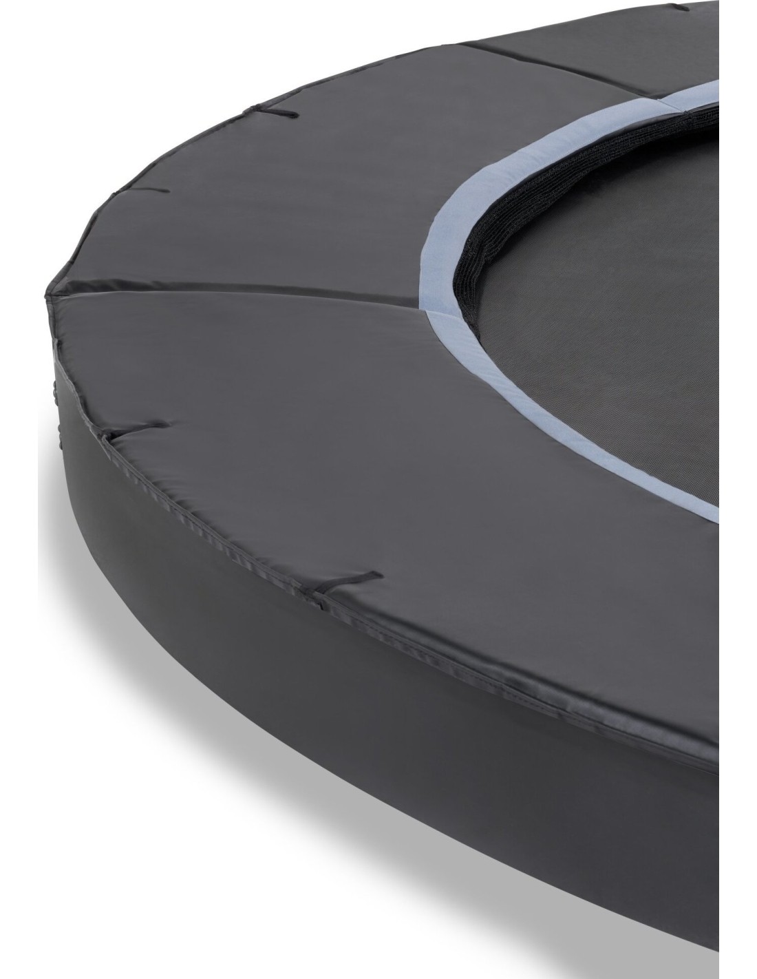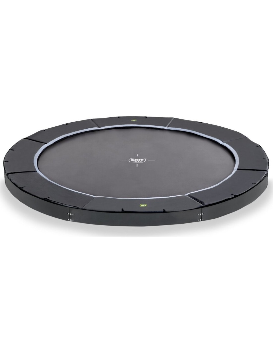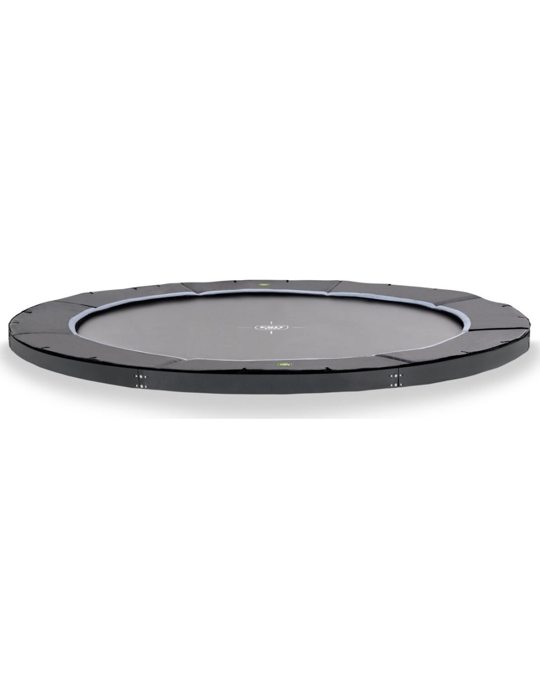 Trampolina sportowa naziemna EXIT Dynamic dla osób od 14 lat wzwyż to okrągła, matowo czarna trampolina naziemna bez siatki zabezpieczającej i płytek. Skoczkowie z dużym doświadczeniem bez problemu podniosą swoje umiejętności na wyższy poziom, ponieważ ta trampolina ma podwójne sprężyny stożkowe o długości 25 cm. A trampolina będzie też mocno trzymać się w miejscu nawet przy najwyższych skokach, ponieważ ultra stabilna górna szyna ma grubość 42 mm. Dodatkowo jest ona ocynkowana, a dla optymalnej ochrony przed wpływami atmosferycznymi i rdzą - malowana proszkowo. Luksusowy matowy wygląd z uzupełniającymi kolorowymi detalami nadaje jej stylowy i nowoczesny wygląd. Dodatkową zaletą trampoliny ziemnej jest to, że wyściółka znajduje się na tym samym poziomie co trawa, dzięki czemu trampolina jest w pełni zintegrowana z resztą ogrodu. Ta dynamiczna trampolina sportowa na poziomie gruntu jest dostarczana bez siatki bezpieczeństwa lub płytek. Oznacza to automatycznie, że nie podlega ona oznakowaniu CE i jest odpowiednia dla osób w wieku 14 lat i starszych. Oczywiście nasze trampoliny sportowe zostały przetestowane pod kątem wszystkich innych wymogów bezpieczeństwa, które dotyczą tych trampolin. Dla optymalnego poczucia bezpieczeństwa trampolina ta jest również dostępna z wysokiej jakości siatką bezpieczeństwa z zachodzącymi drzwiami lub z wyjątkowymi płytkami bezpieczeństwa EXIT Freezone.