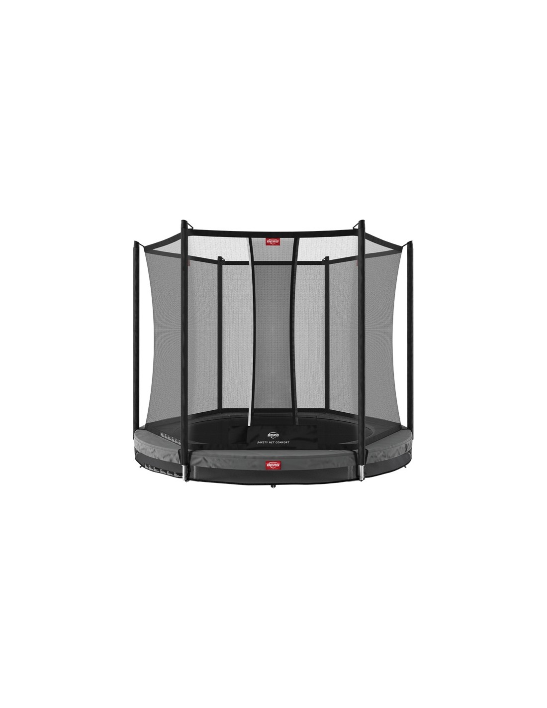 Skakanie na trampolinach to radosne doświadczenie, ale najważniejsze jest bezpieczeństwo. Z tego powodu BERG kładzie duży nacisk na testowanie swoich produktów. Wysokie i solidne siatki BERG gwarantują bezpieczne skakanie, nawet jeśli skacze się najwyżej, jak to możliwe. Wszystkie produkty BERG mają najwyższe międzynarodowe certyfikaty bezpieczeństwa. BERG przeprowadza niezależne testy TUV, Intertek i AiB Vincotte oraz testuje odporność materiałów na warunki pogodowe. Trampoliny są wyposażone w bardzo mocne maty do skakania (odporne na promieniowanie UV i przemakanie), umocowane na solidnych sprężynach. Krawędzie są idealnie dopasowane do maty, co zwiększa bezpieczeństwo i komfort skakania. Dzięki wzmocnieniu spawów ramy oraz zastosowaniu stalowych połączeń, konstrukcja jest jeszcze bardziej stabilna. Wszystkie metalowe elementy są ocynkowane wewnątrz i na zewnątrz, dzięki czemu nie rdzewieją.