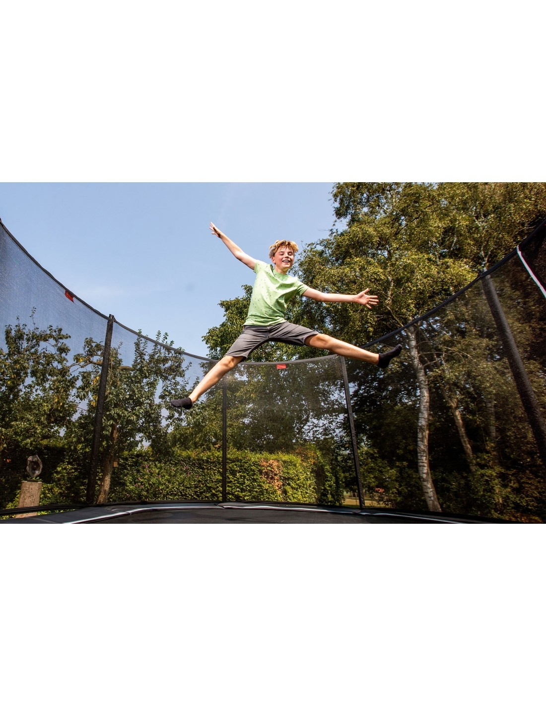 Skakanie na trampolinach to radosne doświadczenie, ale najważniejsze jest bezpieczeństwo. Z tego powodu BERG kładzie duży nacisk na testowanie swoich produktów. Wysokie i solidne siatki BERG gwarantują bezpieczne skakanie, nawet jeśli skacze się najwyżej, jak to możliwe. Wszystkie produkty BERG mają najwyższe międzynarodowe certyfikaty bezpieczeństwa. BERG przeprowadza niezależne testy TUV, Intertek i AiB Vincotte oraz testuje odporność materiałów na warunki pogodowe. Trampoliny są wyposażone w bardzo mocne maty do skakania (odporne na promieniowanie UV i przemakanie), umocowane na solidnych sprężynach. Krawędzie są idealnie dopasowane do maty, co zwiększa bezpieczeństwo i komfort skakania. Dzięki wzmocnieniu spawów ramy oraz zastosowaniu stalowych połączeń, konstrukcja jest jeszcze bardziej stabilna. Wszystkie metalowe elementy są ocynkowane wewnątrz i na zewnątrz, dzięki czemu nie rdzewieją.