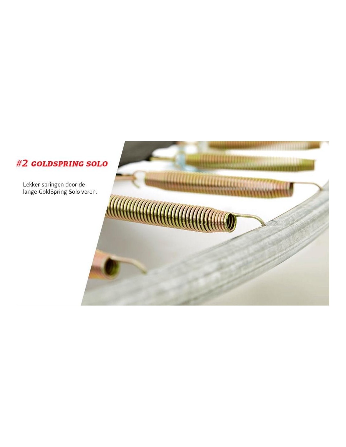 - Wyposażona w sprężyny GoldSpring Solo zapewniające mnóstwo zabawy podczas skakania.