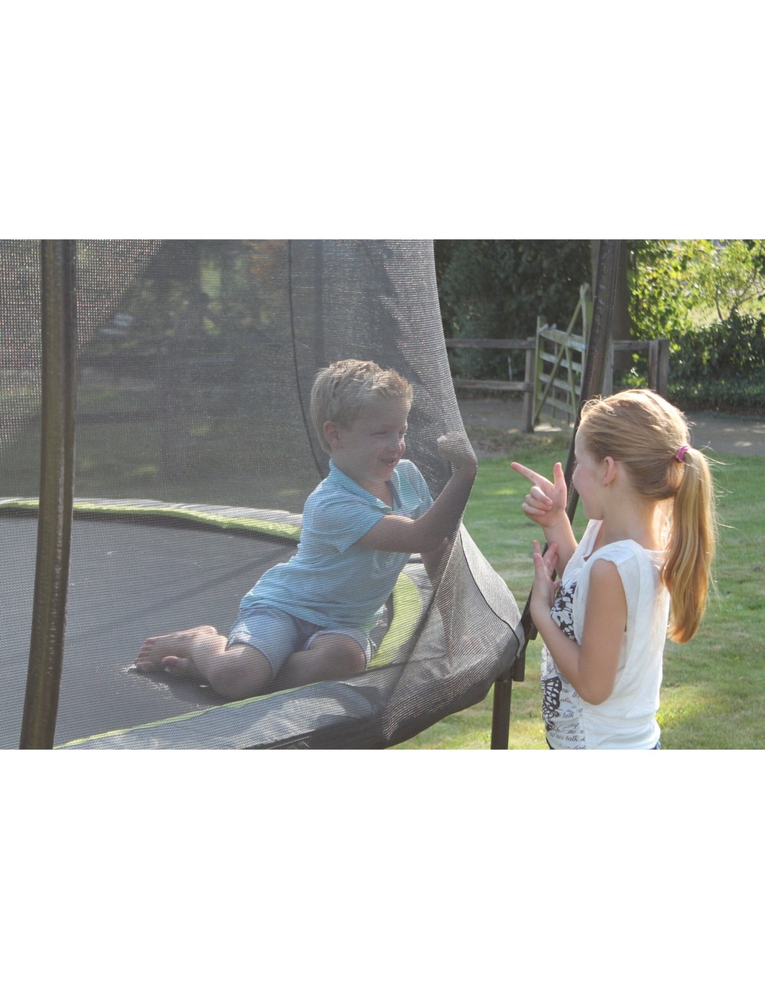Trampolina EXIT Silhouette na nogach to okrągła trampolina dobrej jakości. Siatka bezpieczeństwa, która jest w standardzie trampoliny na nogach, jest wyposażona w zakrzywione słupki, dzięki czemu siatka jest napięta. Wysokiej jakości krawędź ochronna całkowicie zakrywa ocynkowane sprężyny i jest wyposażona w specjalnie opracowany system ochrony stóp, aby stopa nie mogła znaleźć się między sprężynami. Wytrzymałe sprężyny gwarantują dobrą siłę odbicia. Rama trampoliny Silhouette jest ocynkowana i malowana proszkowo, dzięki czemu rdza nie ma szans. Przeżyj niekończącą się zabawę ze skakaniem na trampolinach EXIT Silhouette!