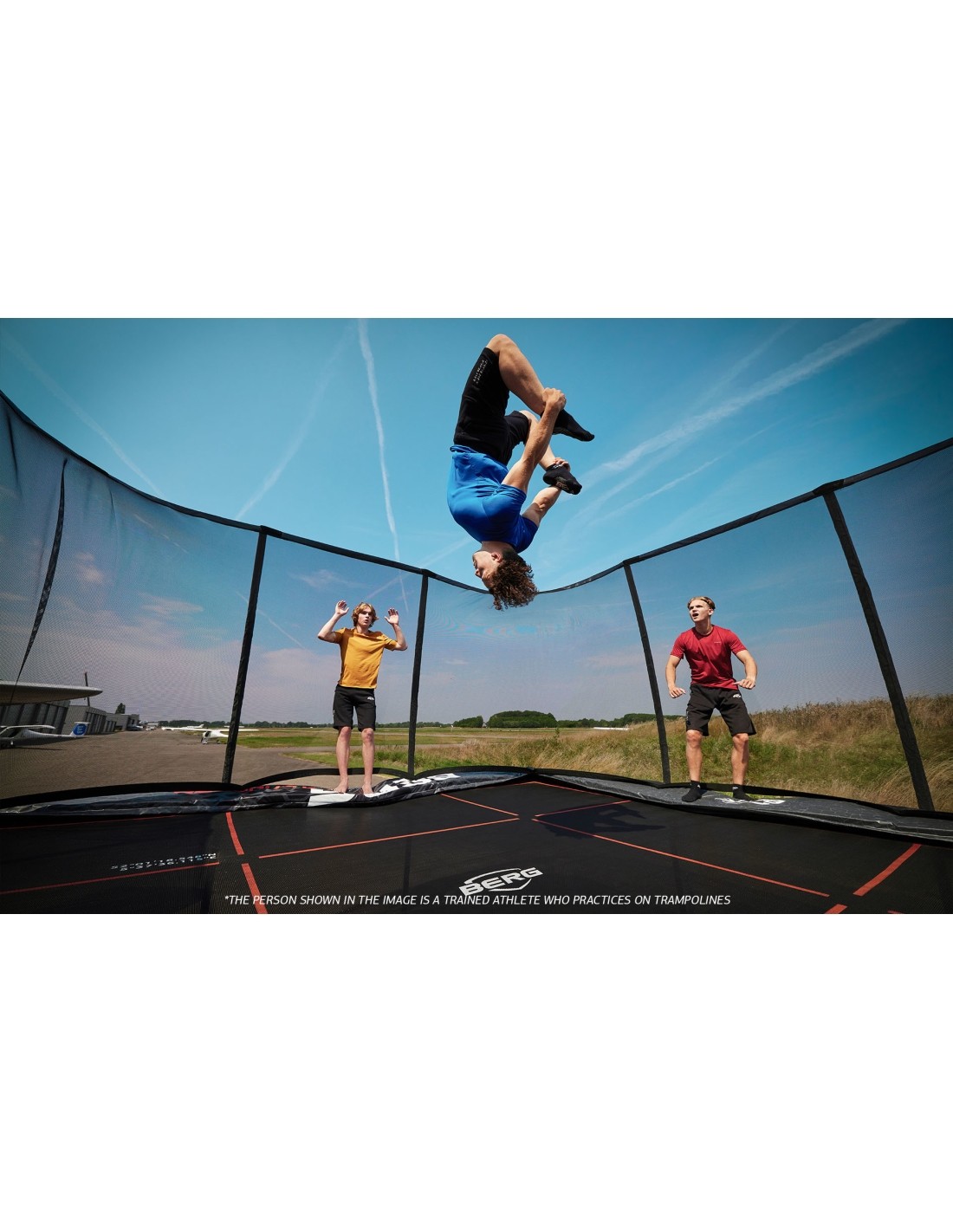 Skakanie na trampolinach to radosne doświadczenie, ale najważniejsze jest bezpieczeństwo. Z tego powodu BERG kładzie duży nacisk na testowanie swoich produktów. Wysokie i solidne siatki BERG gwarantują bezpieczne skakanie, nawet jeśli skacze się najwyżej, jak to możliwe. Wszystkie produkty BERG mają najwyższe międzynarodowe certyfikaty bezpieczeństwa. BERG przeprowadza niezależne testy TUV, Intertek i AiB Vincotte oraz testuje odporność materiałów na warunki pogodowe. Trampoliny są wyposażone w bardzo mocne maty do skakania (odporne na promieniowanie UV i przemakanie), umocowane na solidnych sprężynach. Krawędzie są idealnie dopasowane do maty, co zwiększa bezpieczeństwo i komfort skakania. Dzięki wzmocnieniu spawów ramy oraz zastosowaniu stalowych połączeń, konstrukcja jest jeszcze bardziej stabilna. Wszystkie metalowe elementy są ocynkowane wewnątrz i na zewnątrz, dzięki czemu nie rdzewieją.