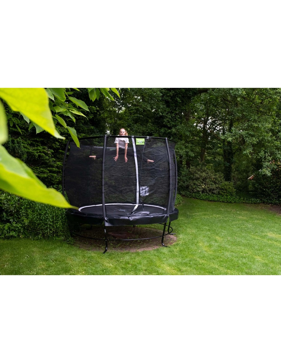 The EXIT Lotus Classic trampoline is a round trampoline with a padding and safety net. Thanks to its unique L-shaped legs, the EXIT Lotus Classic trampoline stands out from all other trampolines on legs, both in design and stability. The L-shaped legs make the Lotus frame extremely stable, thus reducing the risk of tipping over when high jumps are made. The EXIT Lotus Classic trampoline comes with a safety net with an overlapping flap. This child-friendly entrance closes automatically so that the safety net does not stay open unnoticed. The poles of the safety net are covered with foam. And like other EXIT trampolines, the Lotus Classic trampoline is equipped with the EXIT Foot Protection System (FPS). This net between the jump mat and padding prevents children's feet getting caught between the springs. The stylish appearance of the Lotus Classic trampoline goes further than the shape of the frame: a fibreglass ring keeps the safety net in shape so it's nice and taut. The trampoline has double conical springs, which ensure a smooth jump. In addition, the padding of this trampoline has a protective, water-repellent pvc top layer. The trampoline frame is galvanized and powder coated, so scratches and rust have no chance.