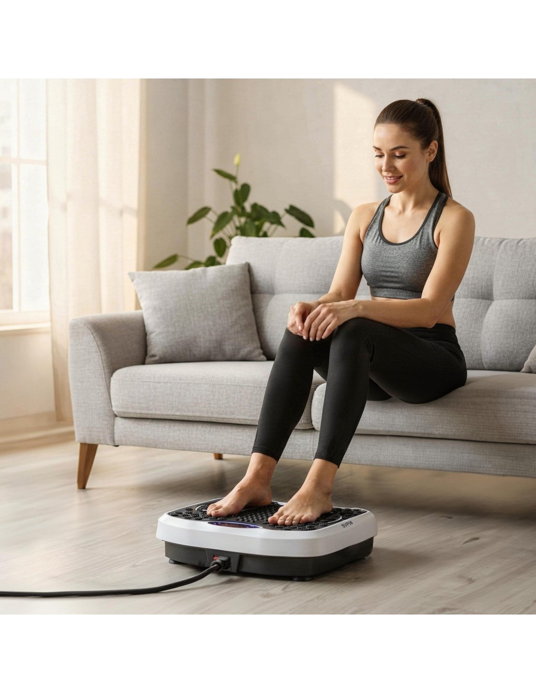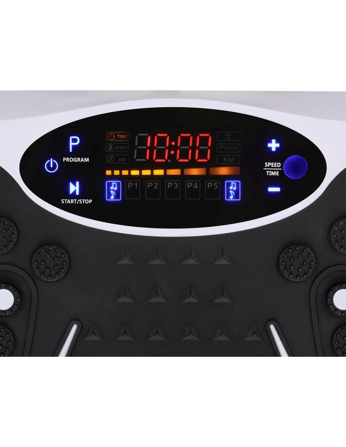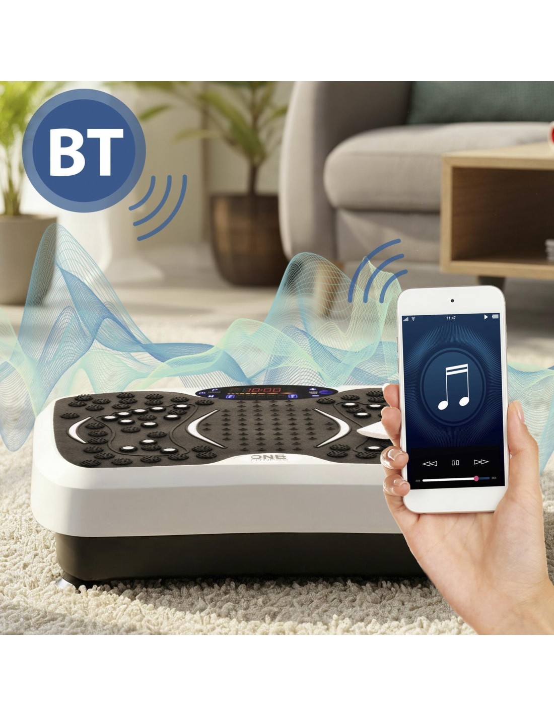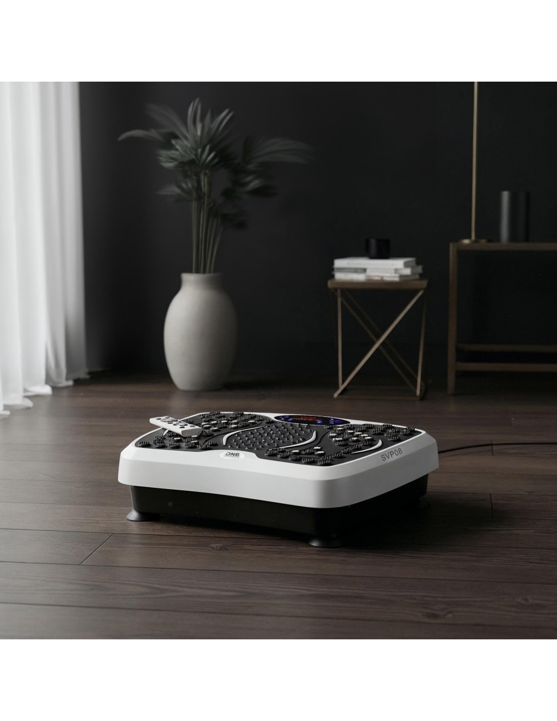 The SVP08 One Fitness features Bluetooth functionality, allowing you to play your favorite music directly from the platform during training. A clear control panel and the included remote control ensure comfortable and intuitive operation without interrupting your workout.