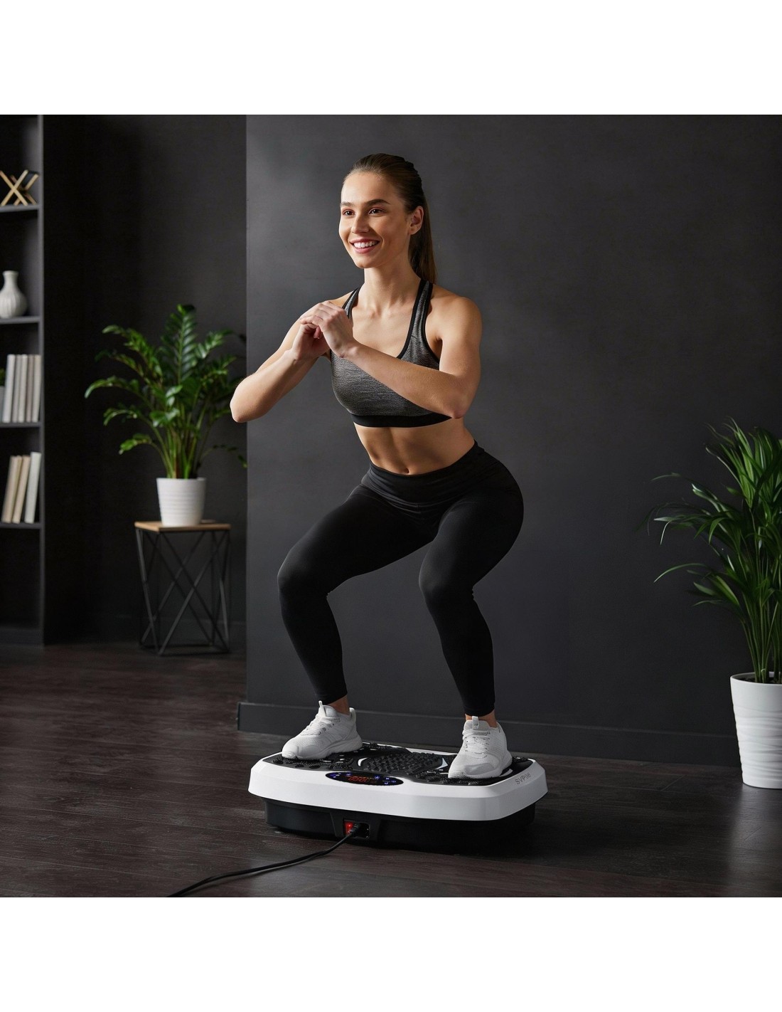 The SVP08 platform set includes resistance bands that enable simultaneous training of upper and lower body parts. Thanks to them, the vibration platform becomes a versatile fitness device suitable for strength, conditioning, and body-shaping exercises.