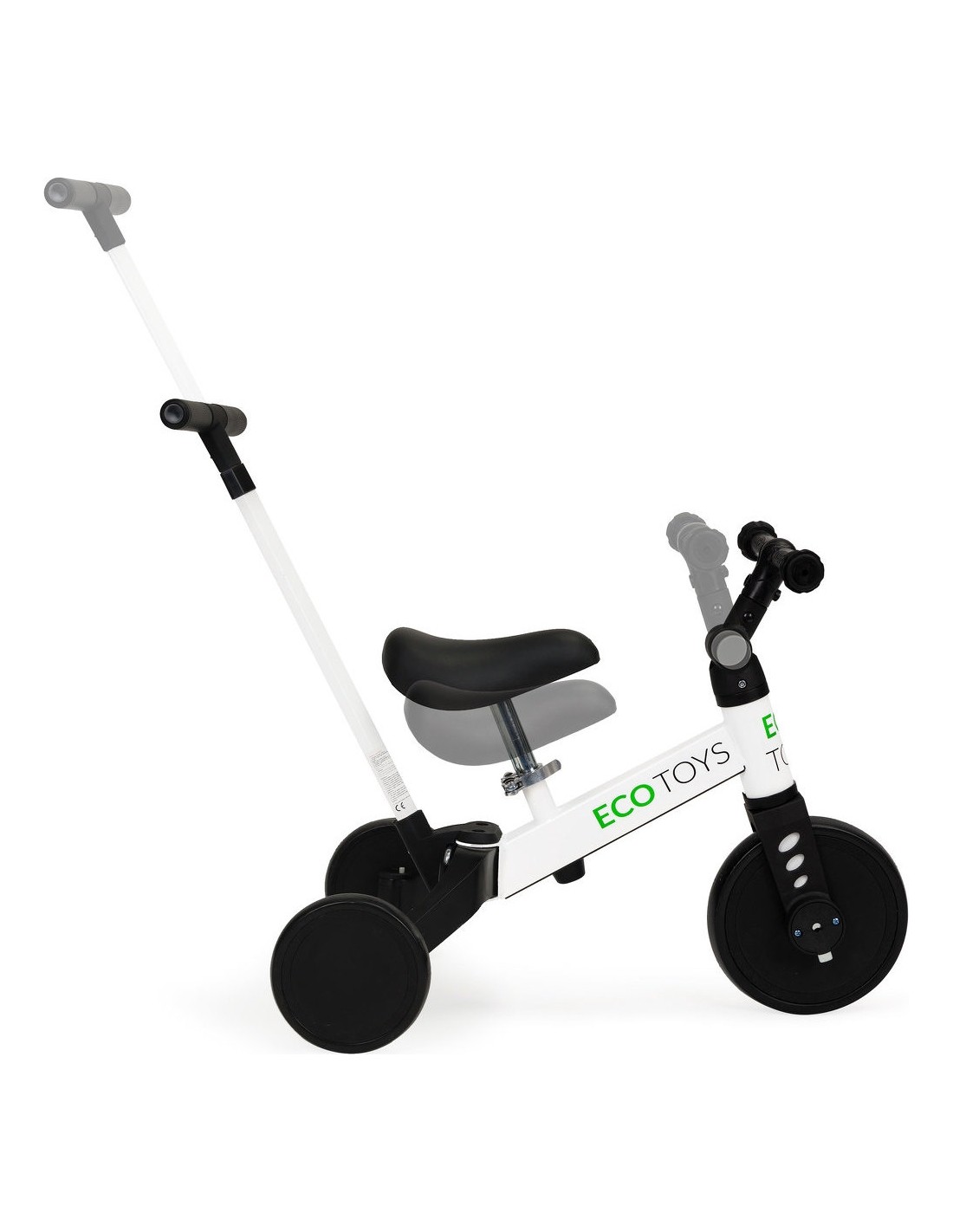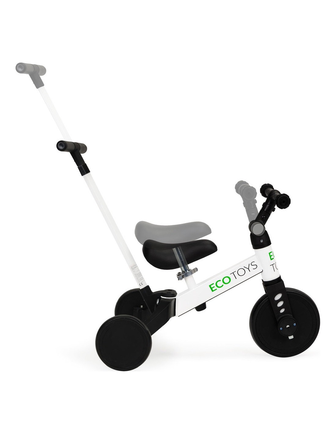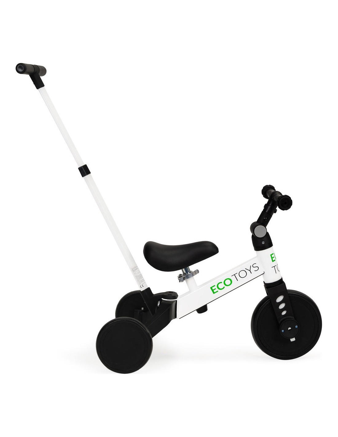 Możliwość przerobienia rowerka biegowego w tradycyjny, napędzany pedałami sprawia, że dziecko może zacząć bezpieczną naukę jazdy na tego typu rowerkach. Miękkie siodełko oraz antypoślizgowe uchwyty zapewnią komfortową zabawę na wiele godzin. Kółka rowerka wykonane są z tworzywa EVA, które są odporne na przebicie dzięki czemu może być używany zarówno w domu jak i na spacerach.