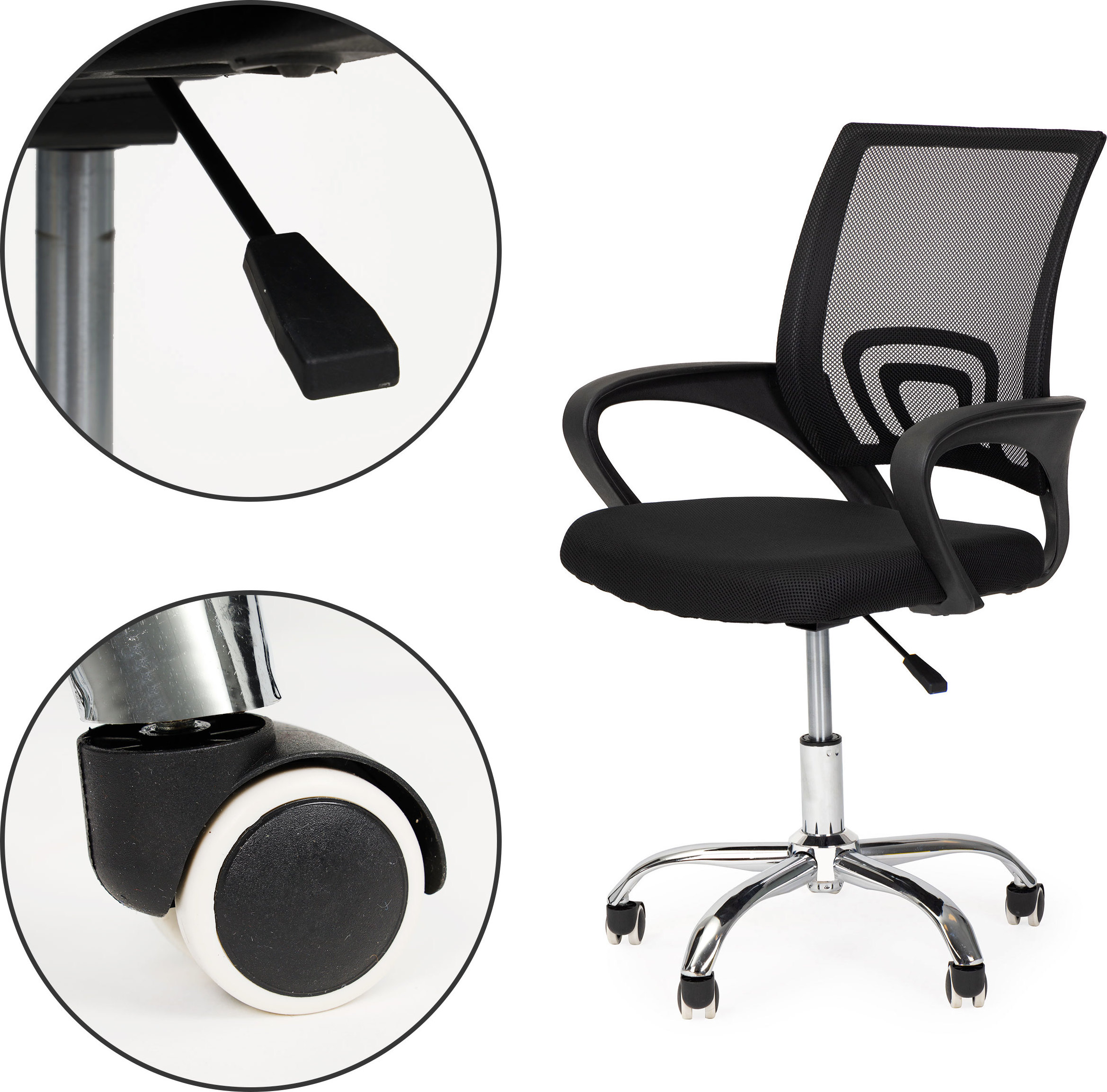 - Pod siedziskiem fotela znajduje się dźwignia, dzięki której możesz regulować wysokość siedziska i jednym ruchem dostosować je do swoich potrzeb.