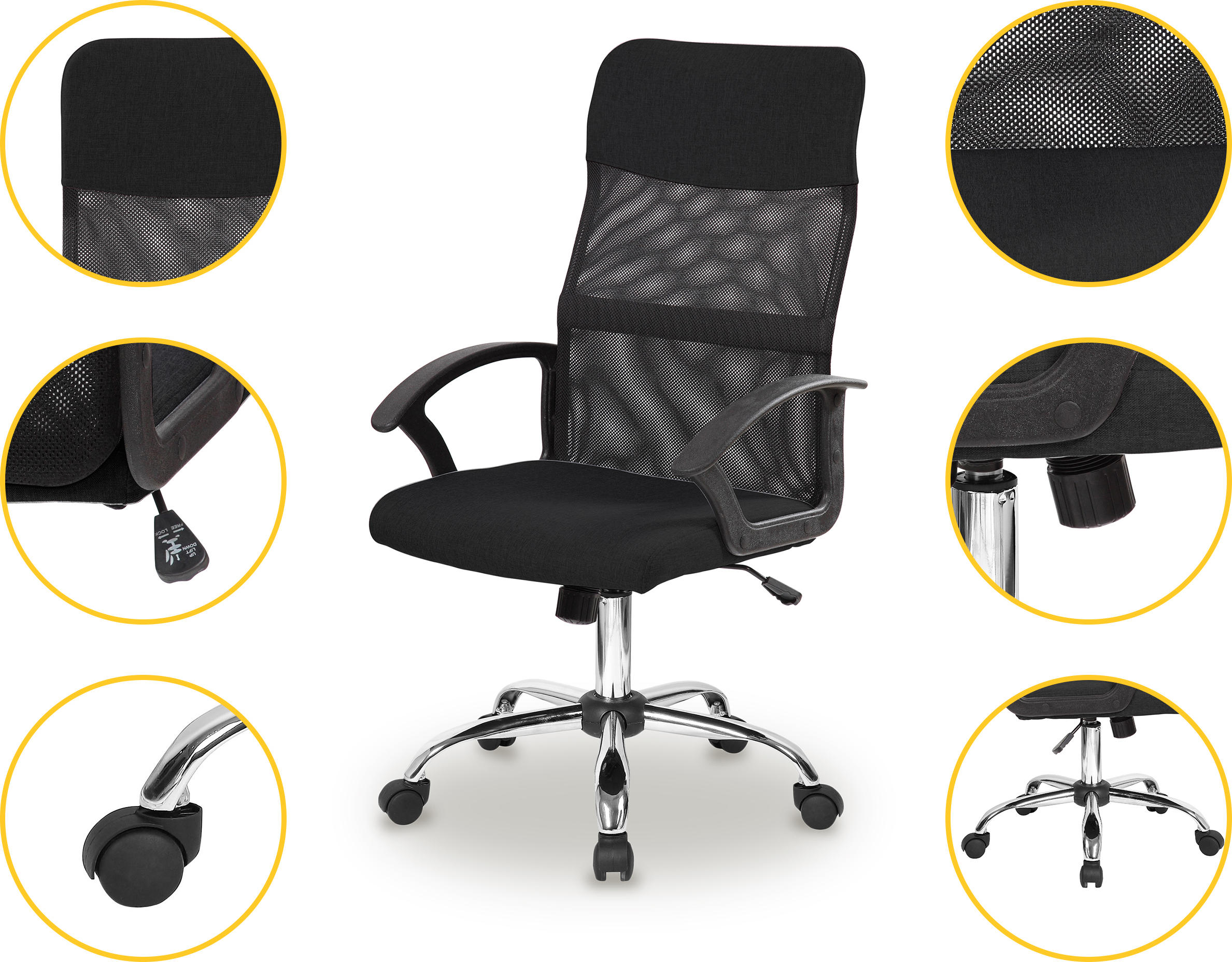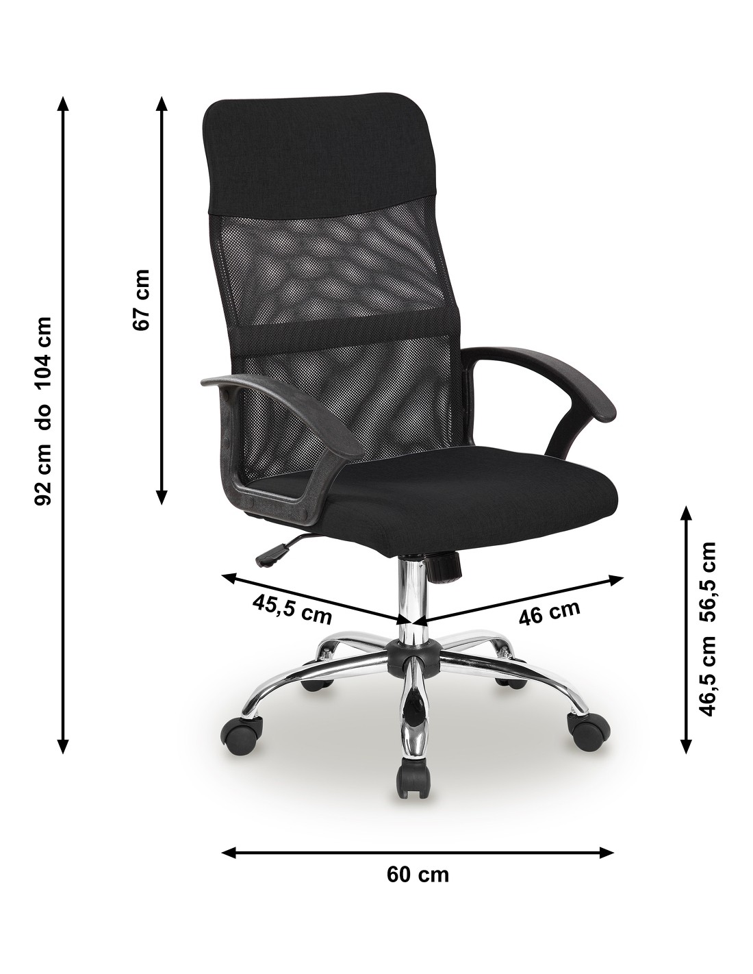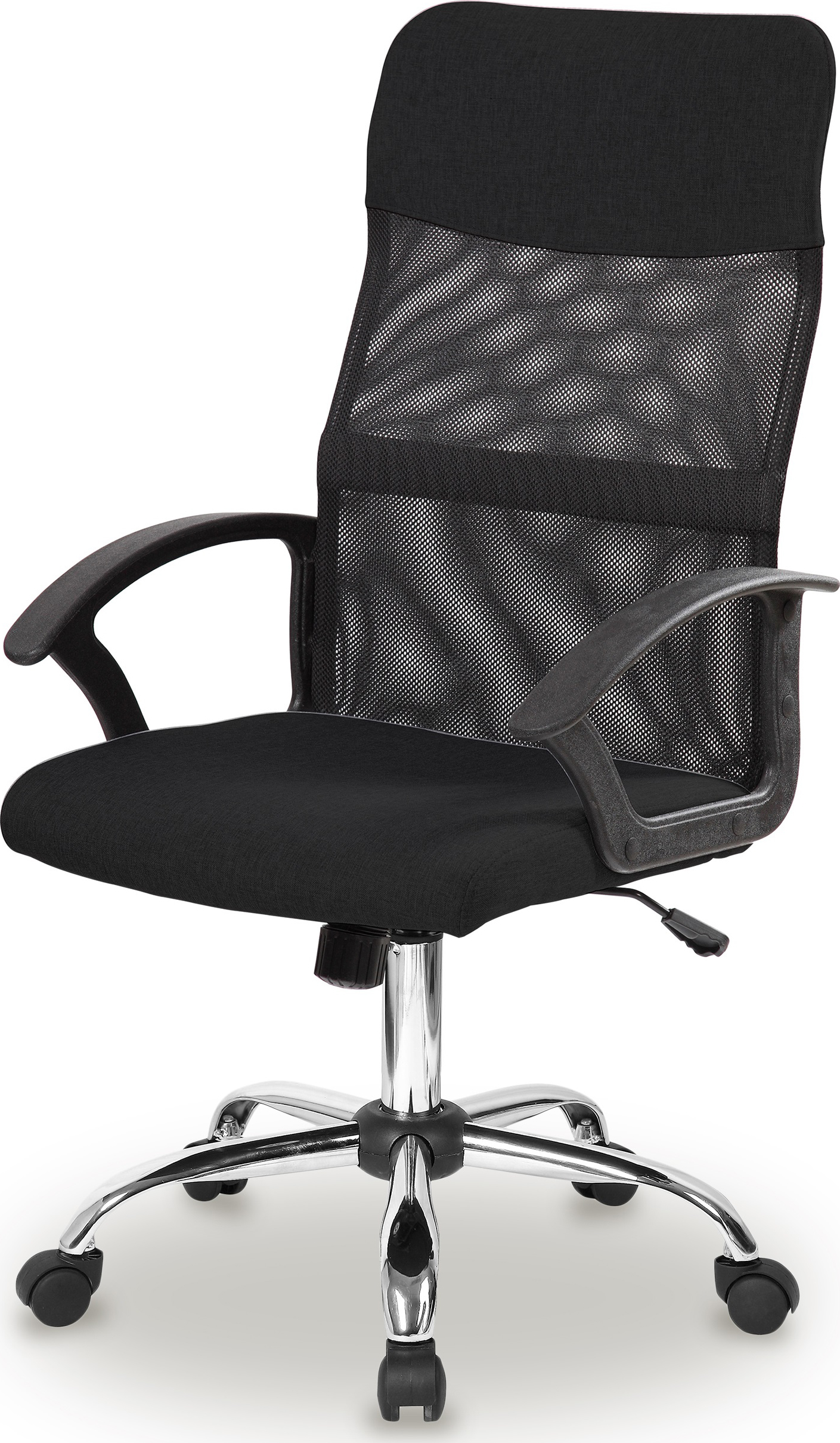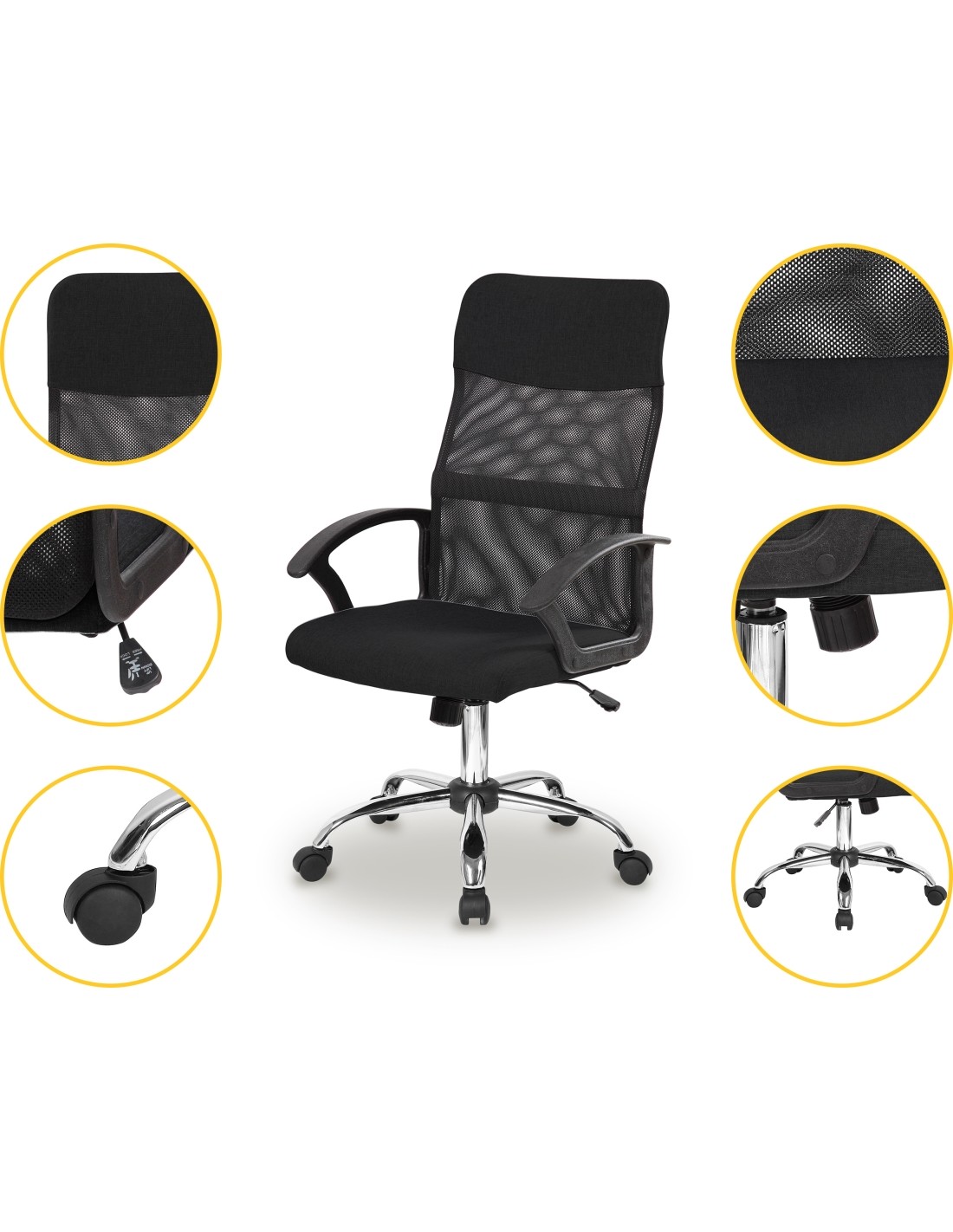 - Fotel biurowy w kolorze czarnym z wygodnym, zapewniającym wentylację siateczkowym oparciem.