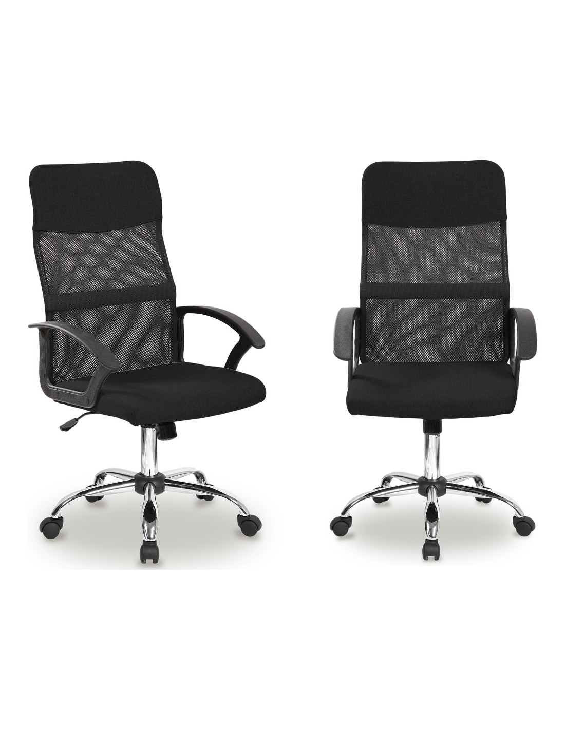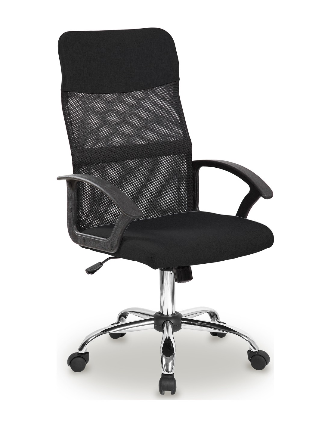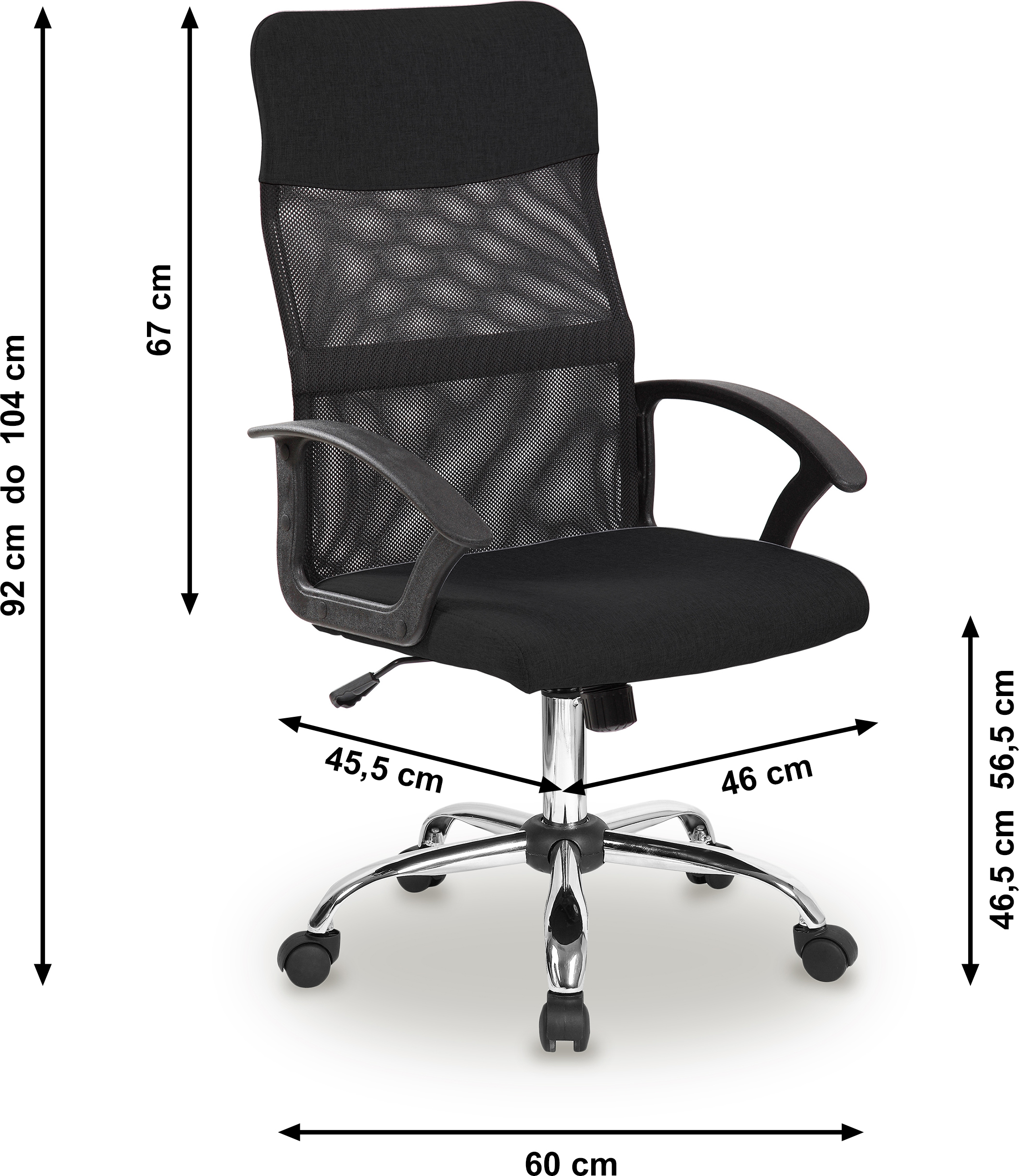- Fotel biurowy w kolorze czarnym z wygodnym, zapewniającym wentylację siateczkowym oparciem.