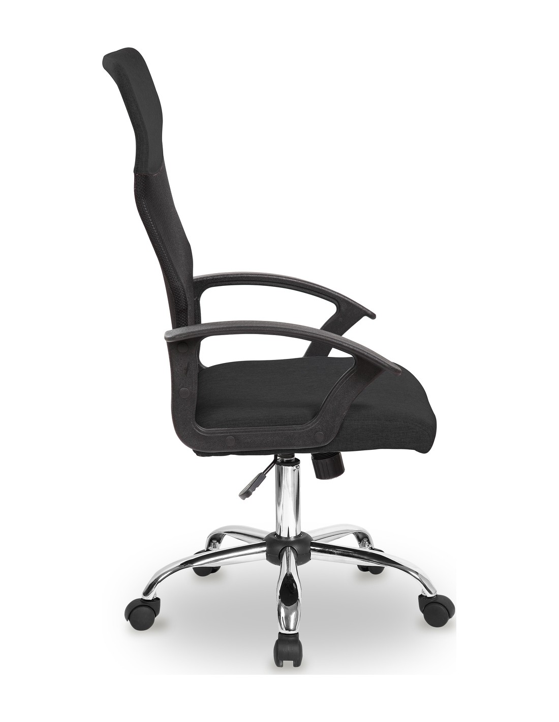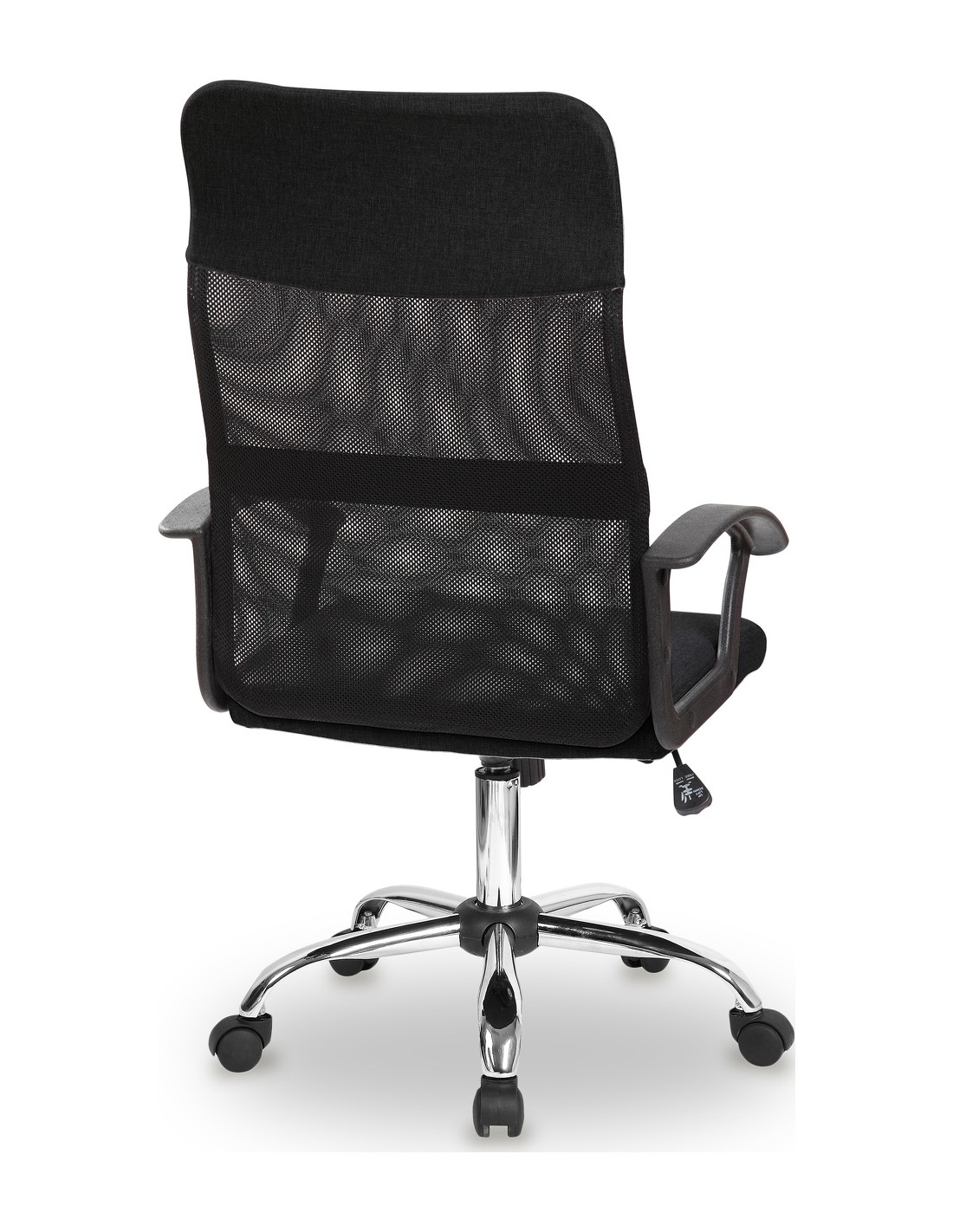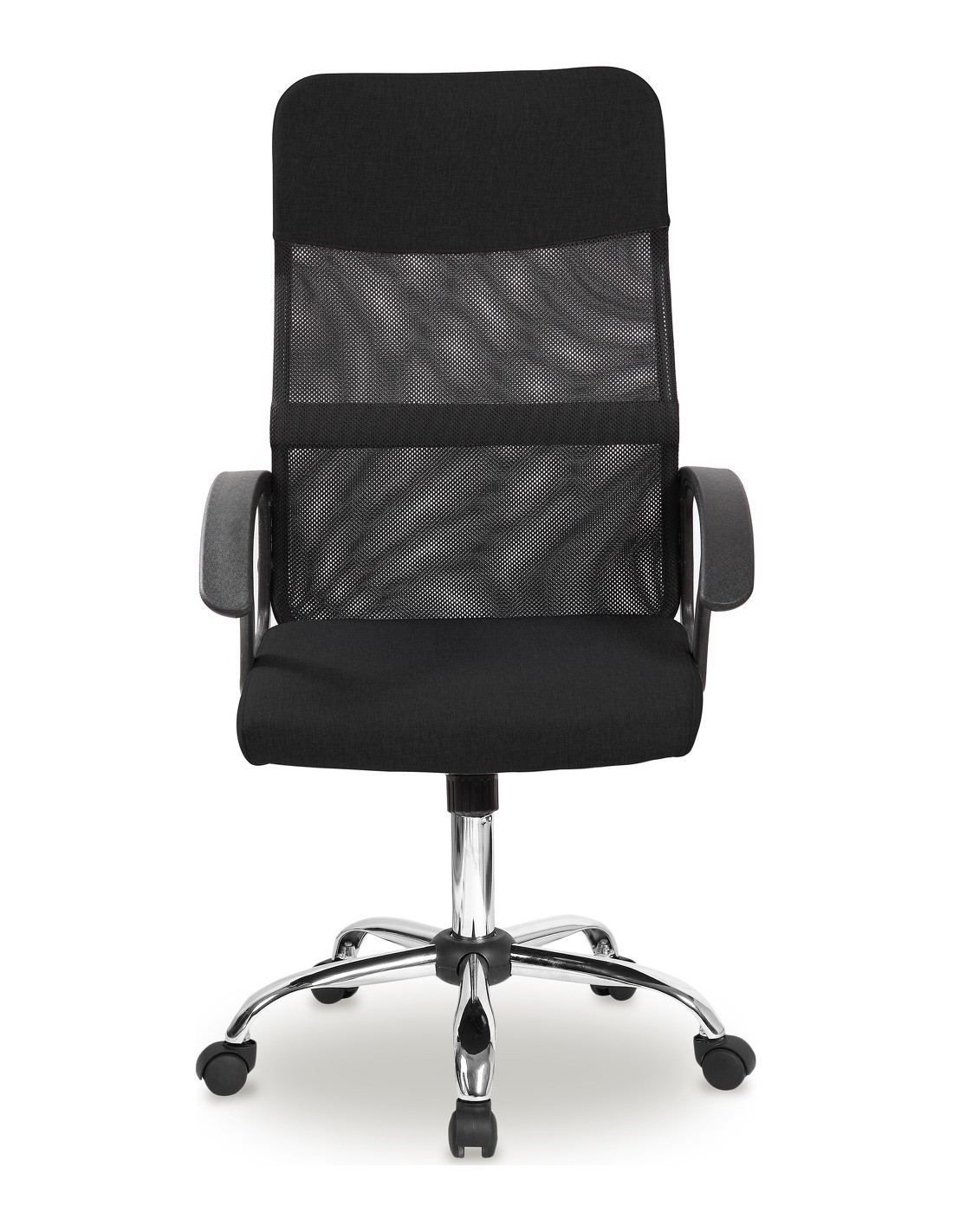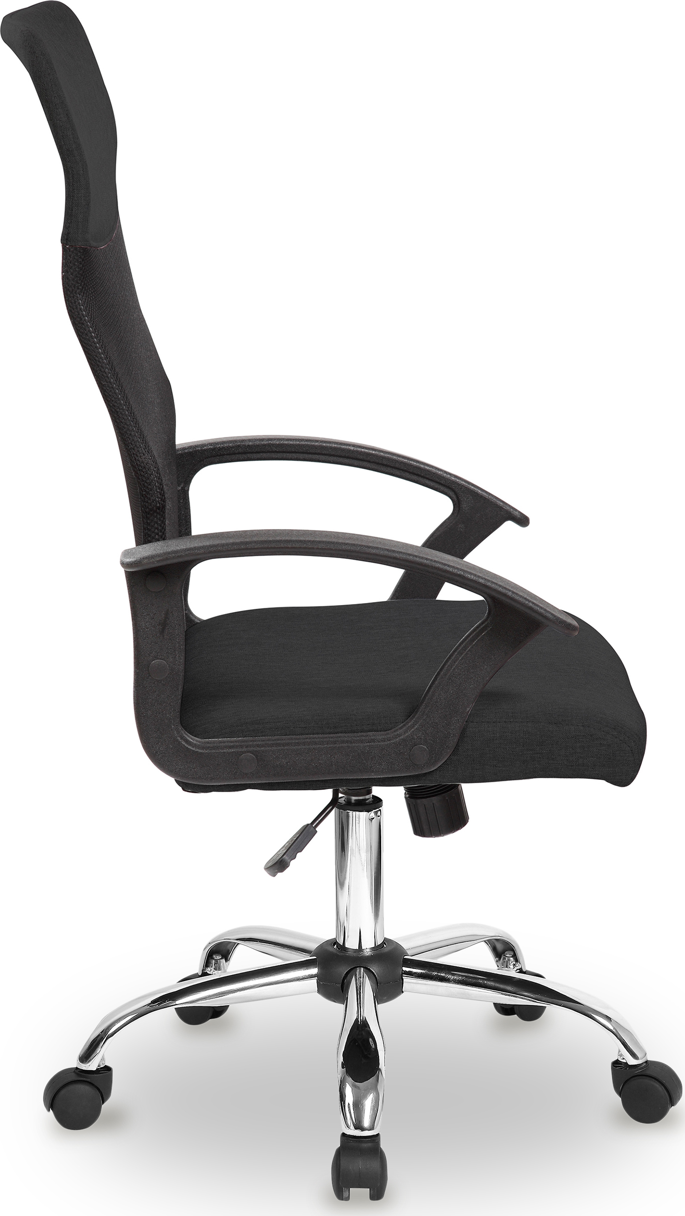 - Fotel biurowy w kolorze czarnym z wygodnym, zapewniającym wentylację siateczkowym oparciem.