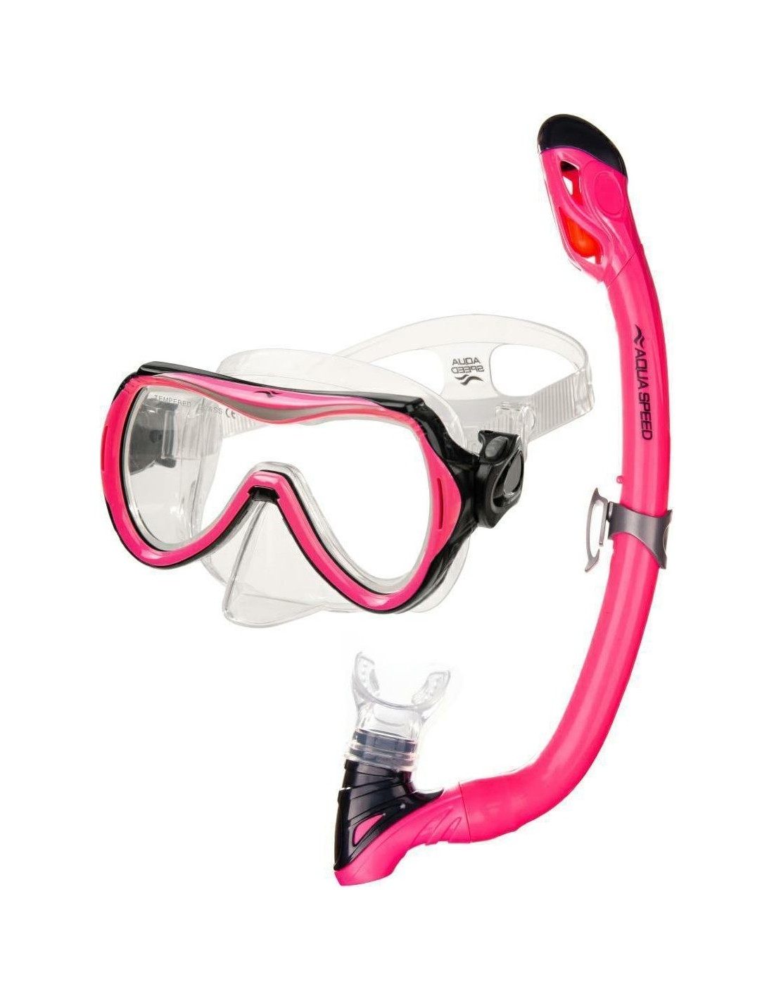 The ALIZE + SAMOS children's diving set is the perfect choice for young lovers of underwater experiences. Key features of mask: 4mm tempered glass lens Liquid silicone (LSR) Single lens Easy to use EASY-ADJUST buckle system Key features of snorkel: Silicone, profiled mouthpiece Modern ULTRA DRY top Bottom exhaust valve Motile neck