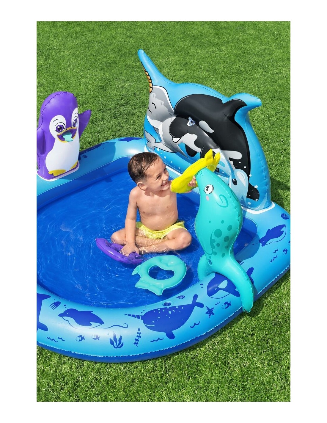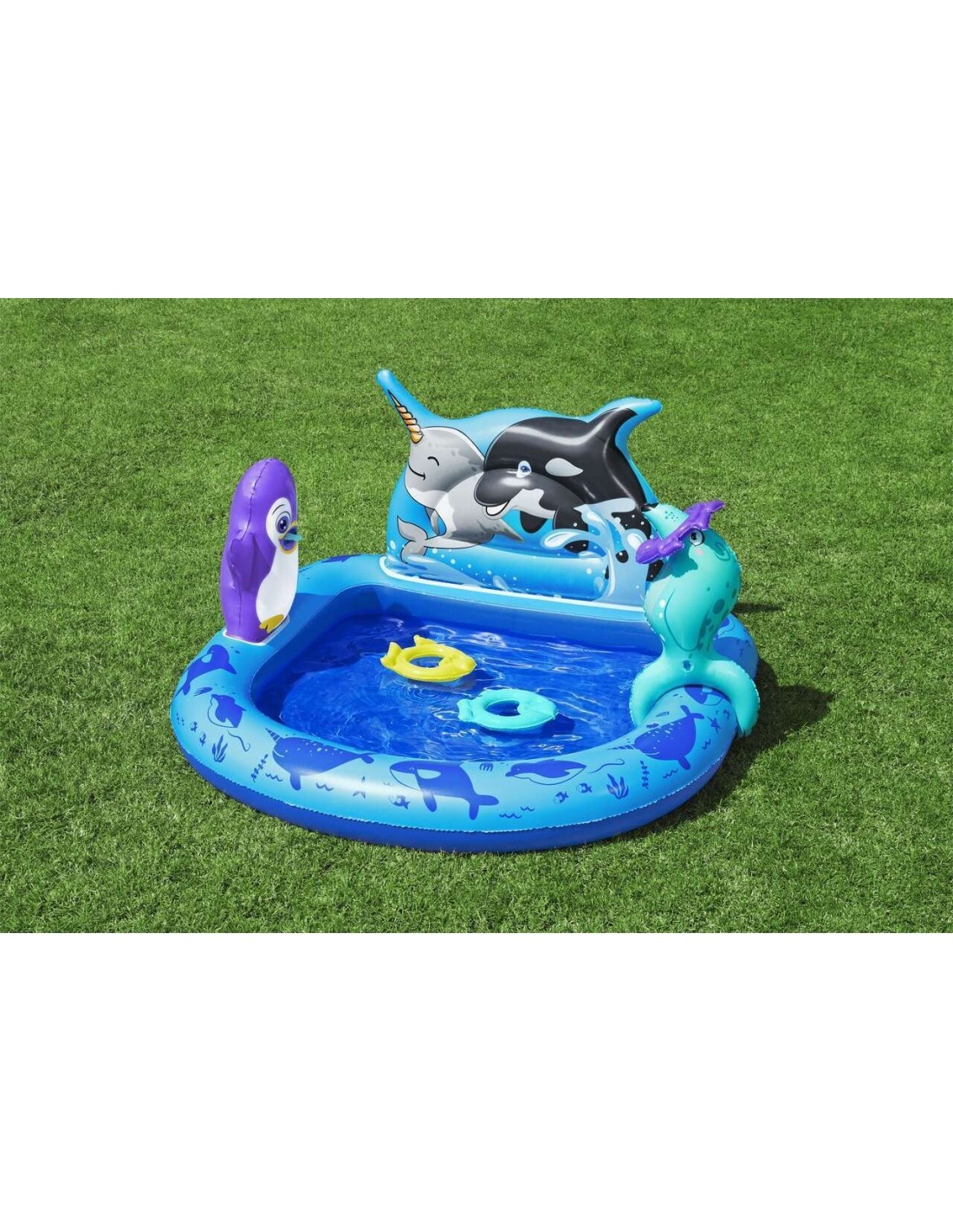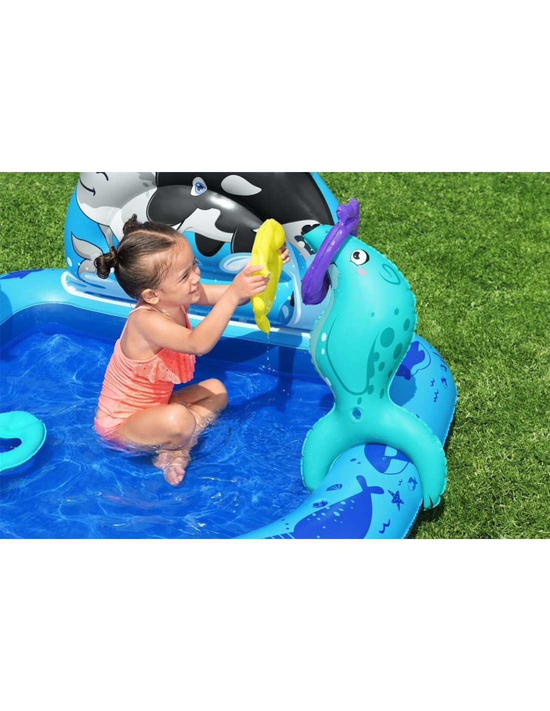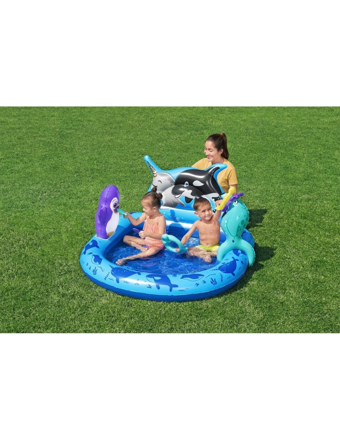Dmuchany wodny plac zabaw "Morska Wyprawa" od renomowanej marki Bestway został stworzony z myślą o najmłodszych. Oferuje niezapomniane chwile zabawy i radości, a także niezawodną ochłodę podczas upalnych dni.