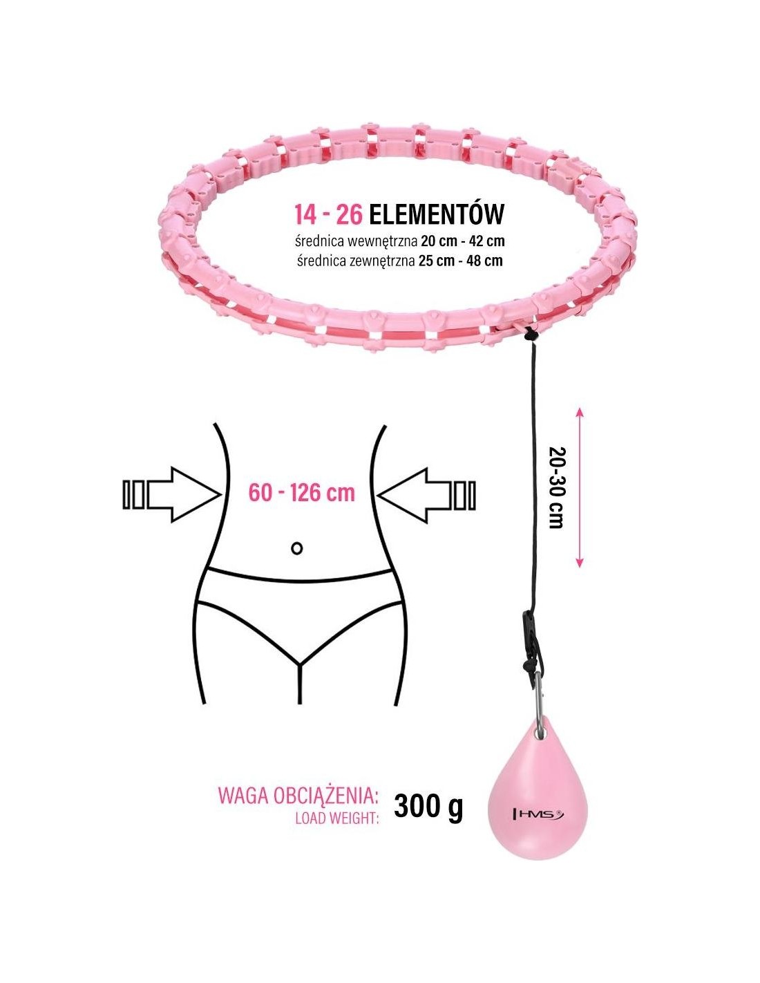 HHW11 HMS is an adjustable hula hoop with a gravity ball for fitness. It allows for simultaneous training and 360-degree waist massage. It is perfect for strengthening and firming the muscle corset, among other things. Thanks to the adjustable circumference, the HHW11 will never fall off during exercise, so home cardio training can be long and enjoyable. The HHW11 is a product designed for plus size people who want to improve their fitness and figure.