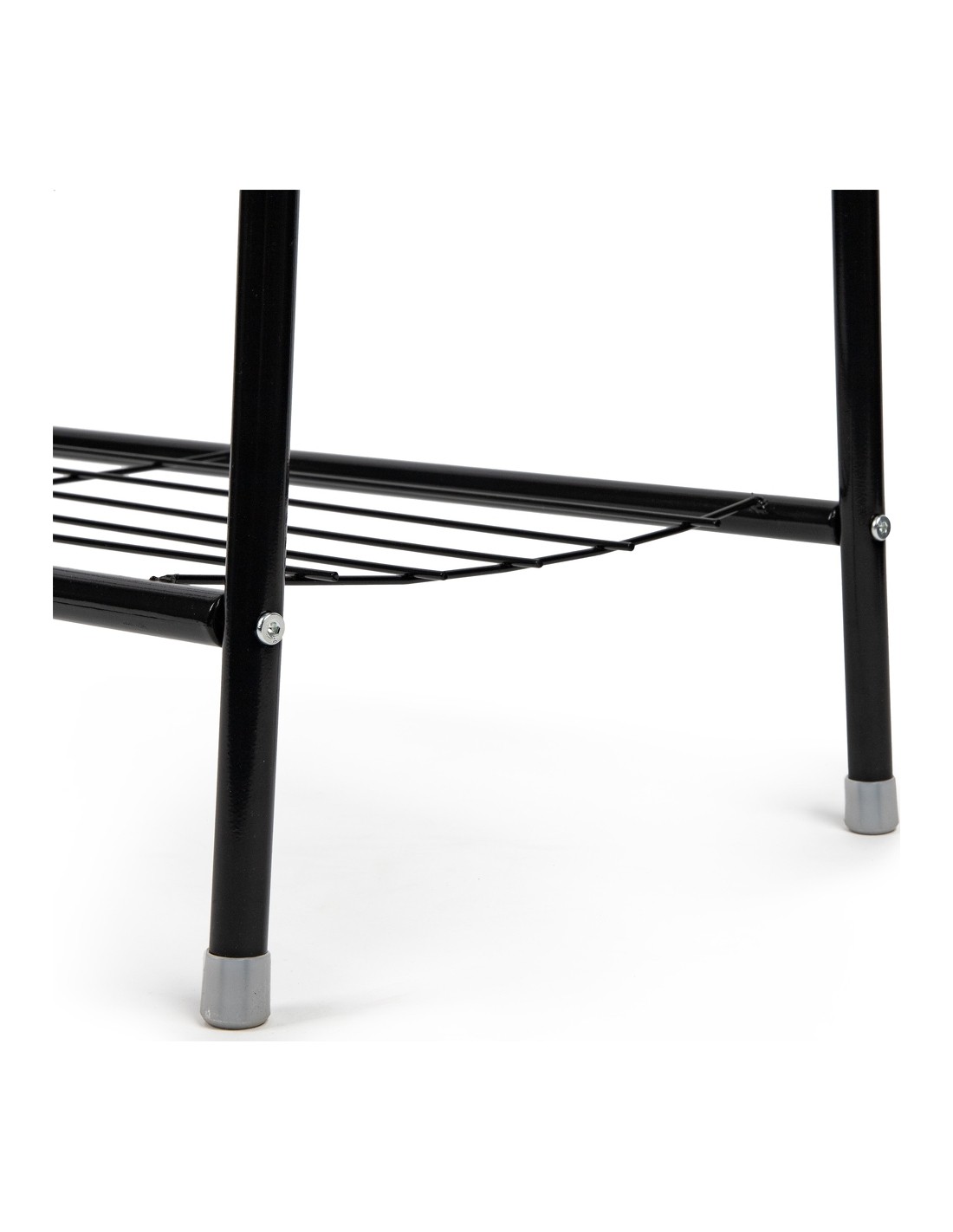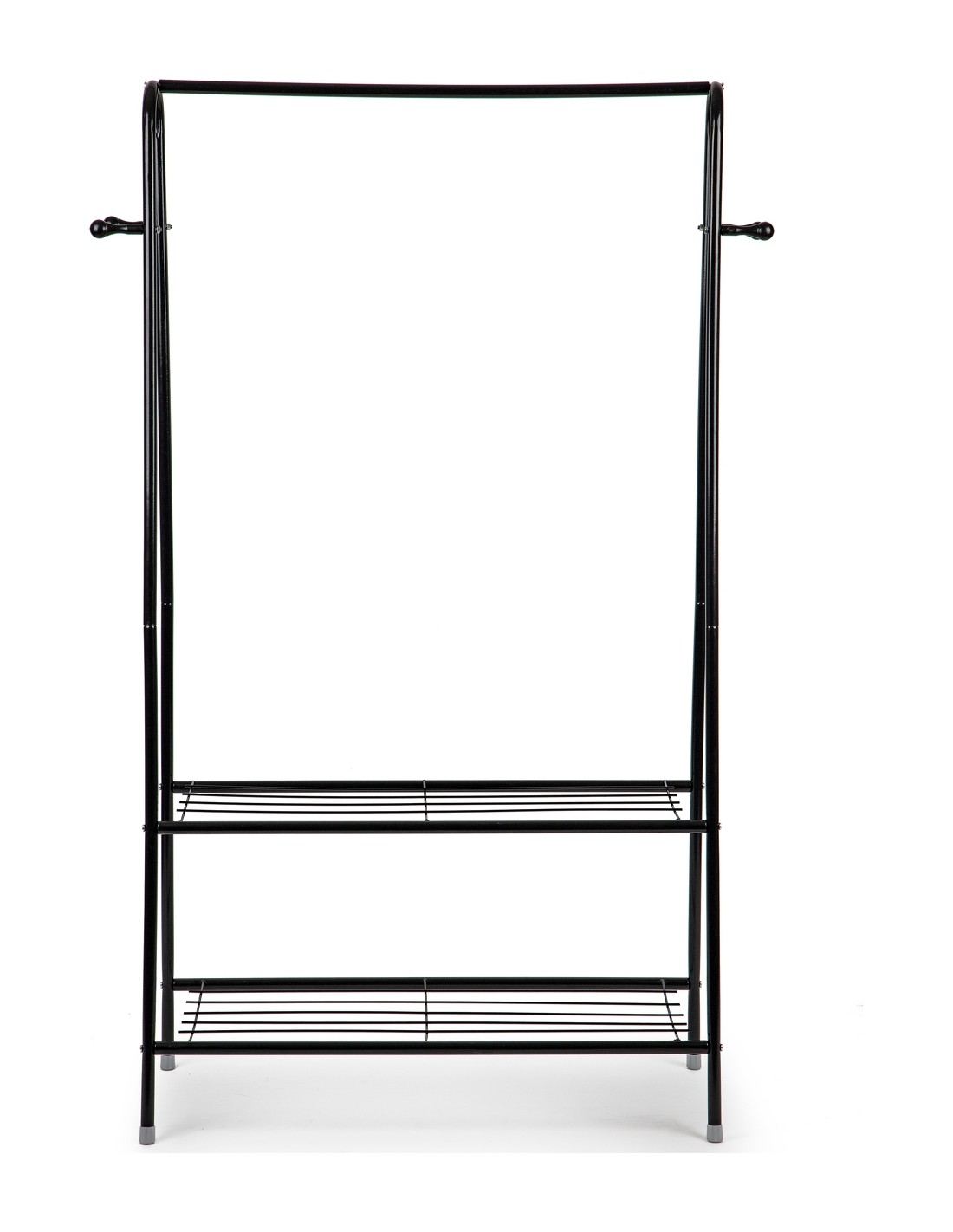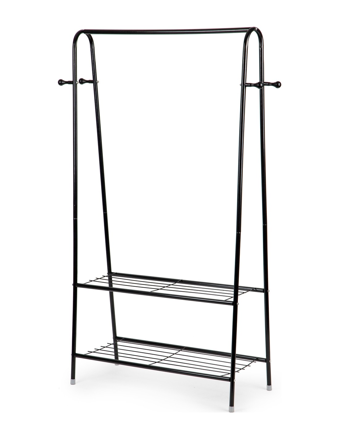 FUNKCJONALNOŚĆGórny poprzeczny drążek ( 77 cm. ) pomieści kurki i koszule a boczne haczyki idealnie nadają się do odwieszenia torebek, plecaków, czy też szali i czapek. Stojak w dolnej części posiada dwie funkcjonalne półki, na których można odłożyć mniejsze elementy garderoby, torebki a nawet buty. Metalowa konstrukcja oparta na 4 nogach gwarantuje stabilność nawet przy dużym obciążeniu. |