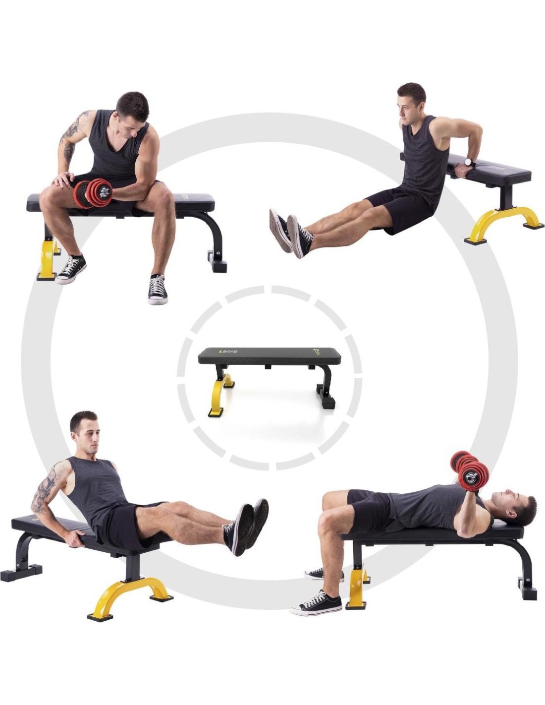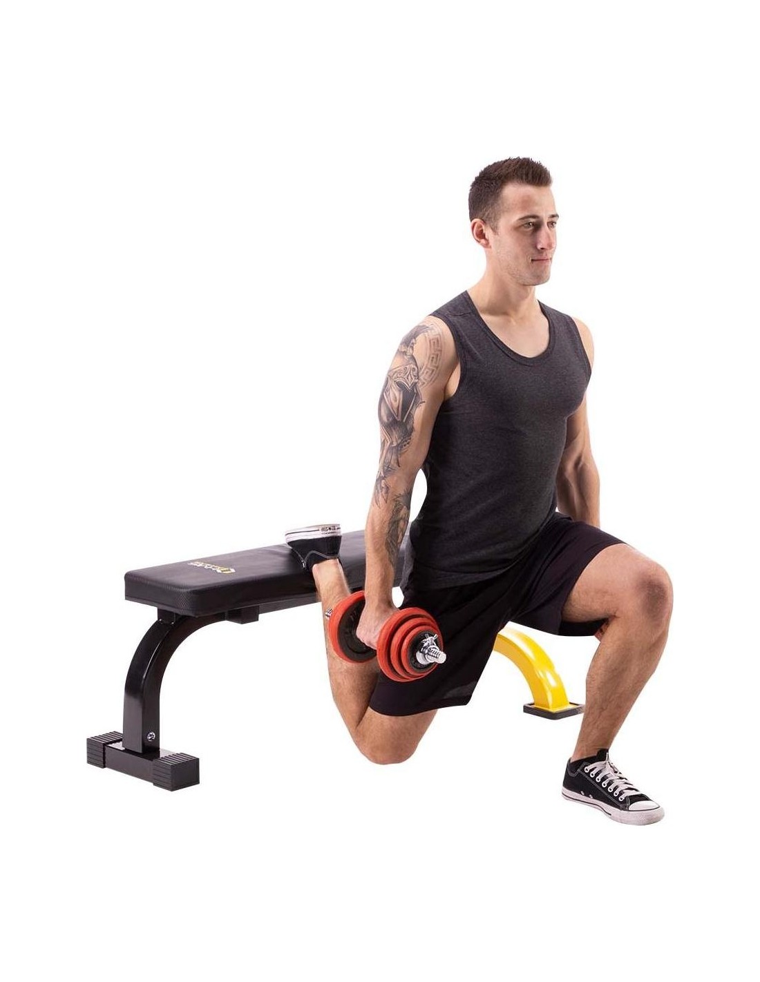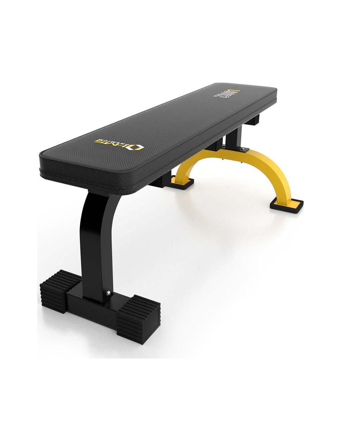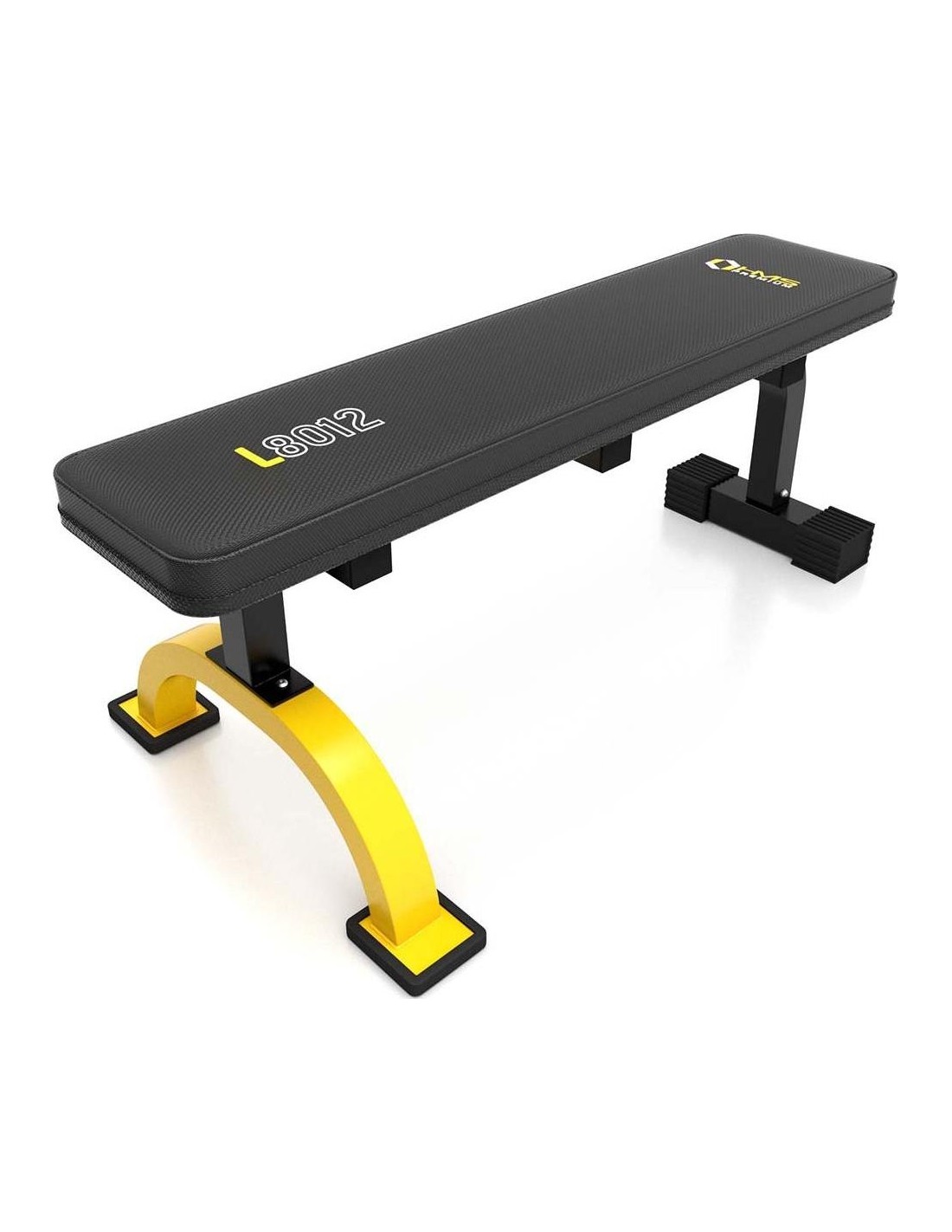 L8012 HMS PREMIUM, to ławka wolnostojąca, przeznaczona do ćwiczeń z hantlami i sztangą. Idealnie sprawdzi się również, w połączeniu ze stojakiem lub suwnicą Smitha. Stabilna solidna konstrukcja Solidna konstrukcja, gwarantuje bezpieczeństwo i wygodę oraz pozwala osiągnąć maksymalne obciążenie 200 kg. Pomimo swojej mocnej konstrukcji, ławka jest lekka, dlatego bardzo łatwo manewrować jej położeniem. Model L8012, to ławka pozioma która nie posiada możliwości regulacji kąta nachylenia oparcia. Przekłada się to na maksymalną stabilność. Komfort i wygoda Solidna deska zapewnia stabilność oparcia, a miękka gąbka gwarantuje komfort i wygodę podczas ćwiczeń. Grubość gąbki jest bardzo istotna, ponieważ to ona ma bezpośredni wpływ na idealne ułożenie ciała. Nowoczesna karbonowa tapicerka, jest odporna na wilgoć i pot oraz zapobiega ślizganiu się ciała podczas ćwiczeń. Jest również bardzo przyjemna w dotyku. Stylowy design Ławka jest nie tylko wygodna i funkcjonalna, ale także stylowa. Połączenie czarnego karbonowego materiału z żółtymi haftowanymi elementami, daje świetny efekt wizualny, który jest charakterystyczny dla marki HMS PREMIUM. Imponująca jakość wykonania i estetyka ławki L8012 HMS PREMIUM, sprawiają, że jest to idealny sprzęt do domowej siłowni.