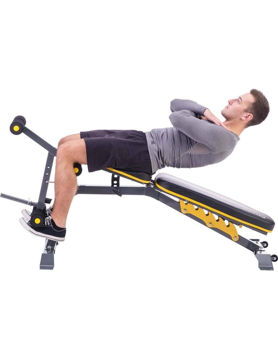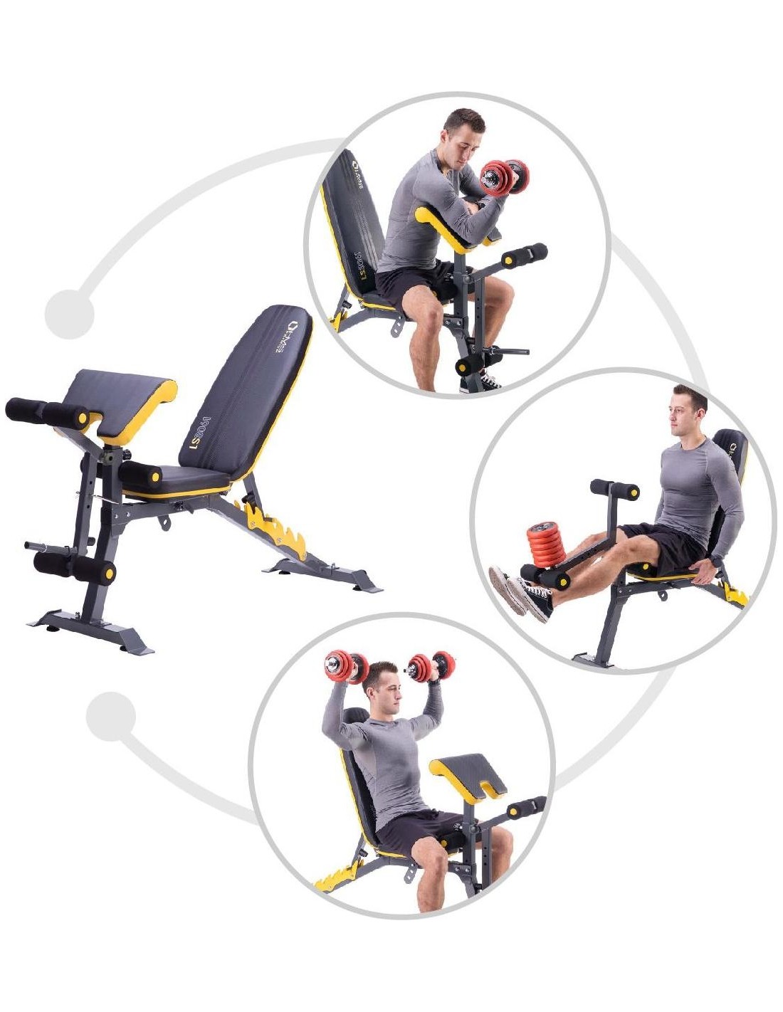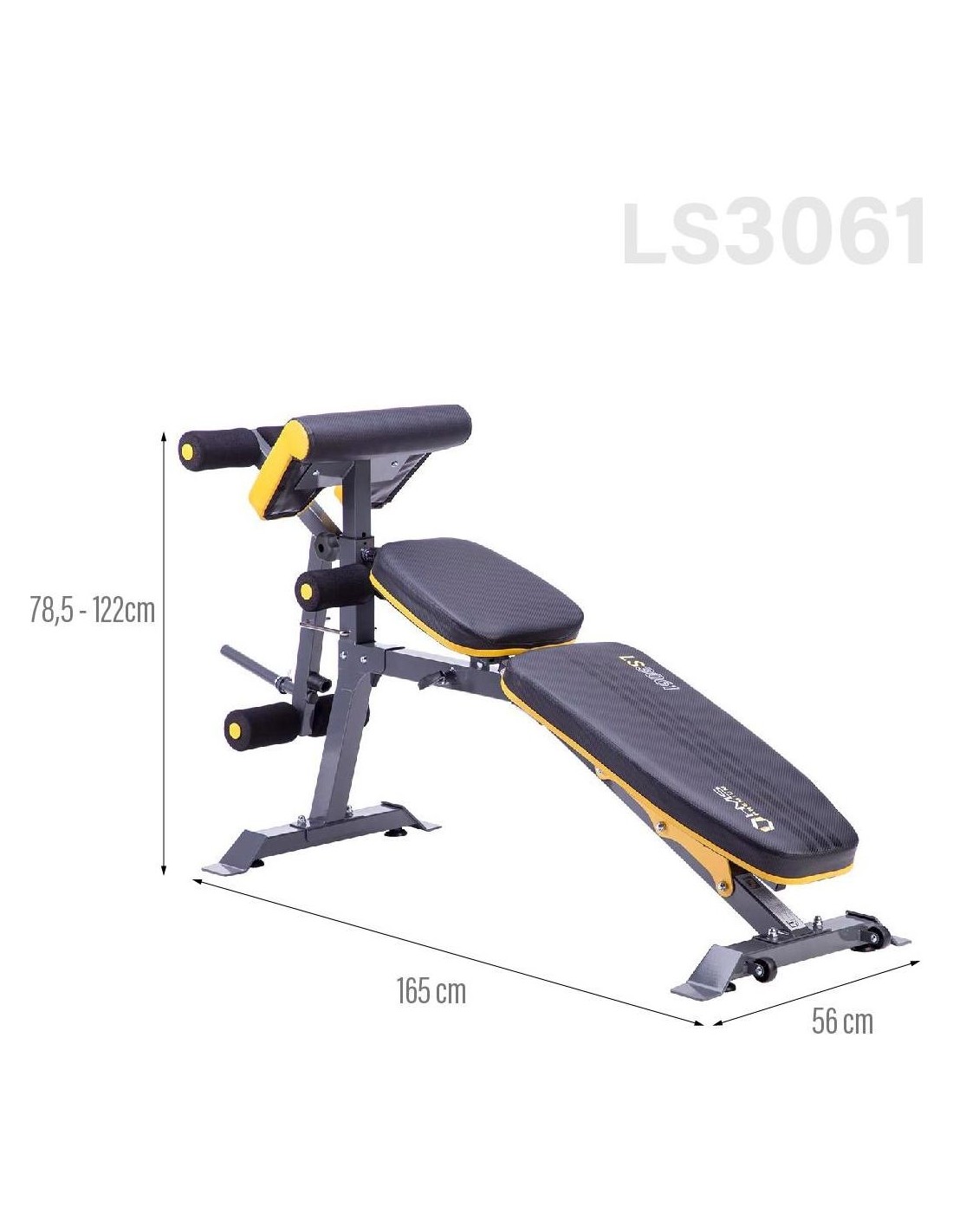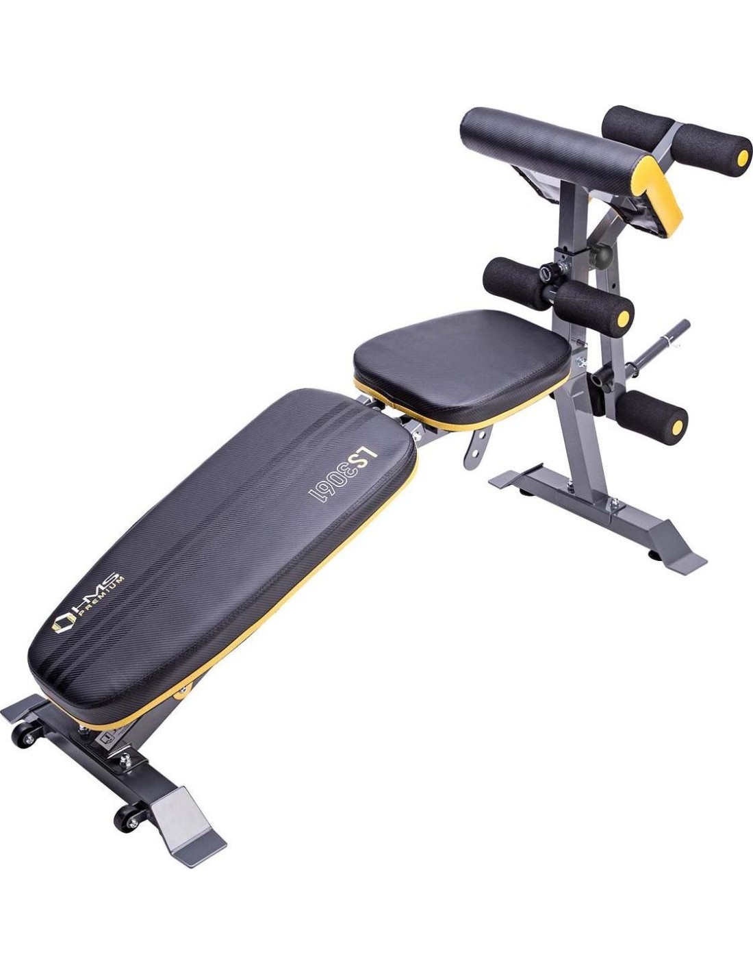 LS3061 HMS PREMIUM, to ławka z modlitewnikiem przeznaczona do treningu ze sztangą lub hantlami. Ławeczka 4 w 1 Ławeczka daje mnóstwo możliwości ćwiczeniowych. Jej budowa sprawia, że idealnie sprawdzi się ze stojakiem na sztangę, jak również do treningu z hantlami. Zakres regulacji kąta nachylenia oparcia, pozwoli w pełni rozwinąć ćwiczony mięsień. Możliwe jest wykonanie ćwiczeń na klatkę piersiową oraz barki. Ustawienie ławeczki skośnie w dół, pozwoli wykonać skłony czyli tzw. brzuszki. Uchwyt na nogi zagwarantuje wygodę i bezpieczeństwo podczas wykonywania tego ćwiczenia, angażującego mięśnie brzucha. Nie zapominajmy, że ławka posiada modlitewnik, powiększa to wachlarz możliwości ćwiczeniowych, o trening bicepsów. Wymontowując modlitewnik, zyskujemy możliwość wykonania treningu nóg. Na prasie do nóg możemy wykonać ćwiczenia mięśni czworogłowych uda. Ustawiając ławkę w pozycji poziomej, kładąc się na brzuchu i zahaczając stopy o uchwyt, wykonany uginanie nóg z obciążeniem, angażując tym samym mięsnie dwugłowe uda. Komfort i wygoda Solidna deska zapewnia stabilność oparcia, a miękka gąbka gwarantuje komfort i wygodę podczas ćwiczeń. Grubość gąbki jest bardzo istotna, ponieważ to ona ma bezpośredni wpływ na idealne ułożenie ciała. Nowoczesna karbonowa tapicerka, jest odporna na wilgoć i pot oraz zapobiega ślizganiu się ciała podczas ćwiczeń. Jest również bardzo przyjemna w dotyku. Wiele możliwości regulacji Ławka posiada szeroki zakres regulacji oparcia, siedziska oraz wysokości modlitewnika. Tak obszerne możliwości manewrowania ustawieniem ławki pozwolą swobodnie dopasować ją do wzrostu użytkownika oraz do konkretnego ćwiczenia. Stylowy design Ławka jest nie tylko wygodna i funkcjonalna, ale także stylowa. Połączenie czarnego karbonowego materiału z żółtymi haftowanymi elementami, daje świetny efekt wizualny, który jest charakterystyczny dla marki HMS PREMIUM. Model LS3061 HMS PREMIUM, to obowiązkowa pozycja na liście wyposażenia domowej siłowni.