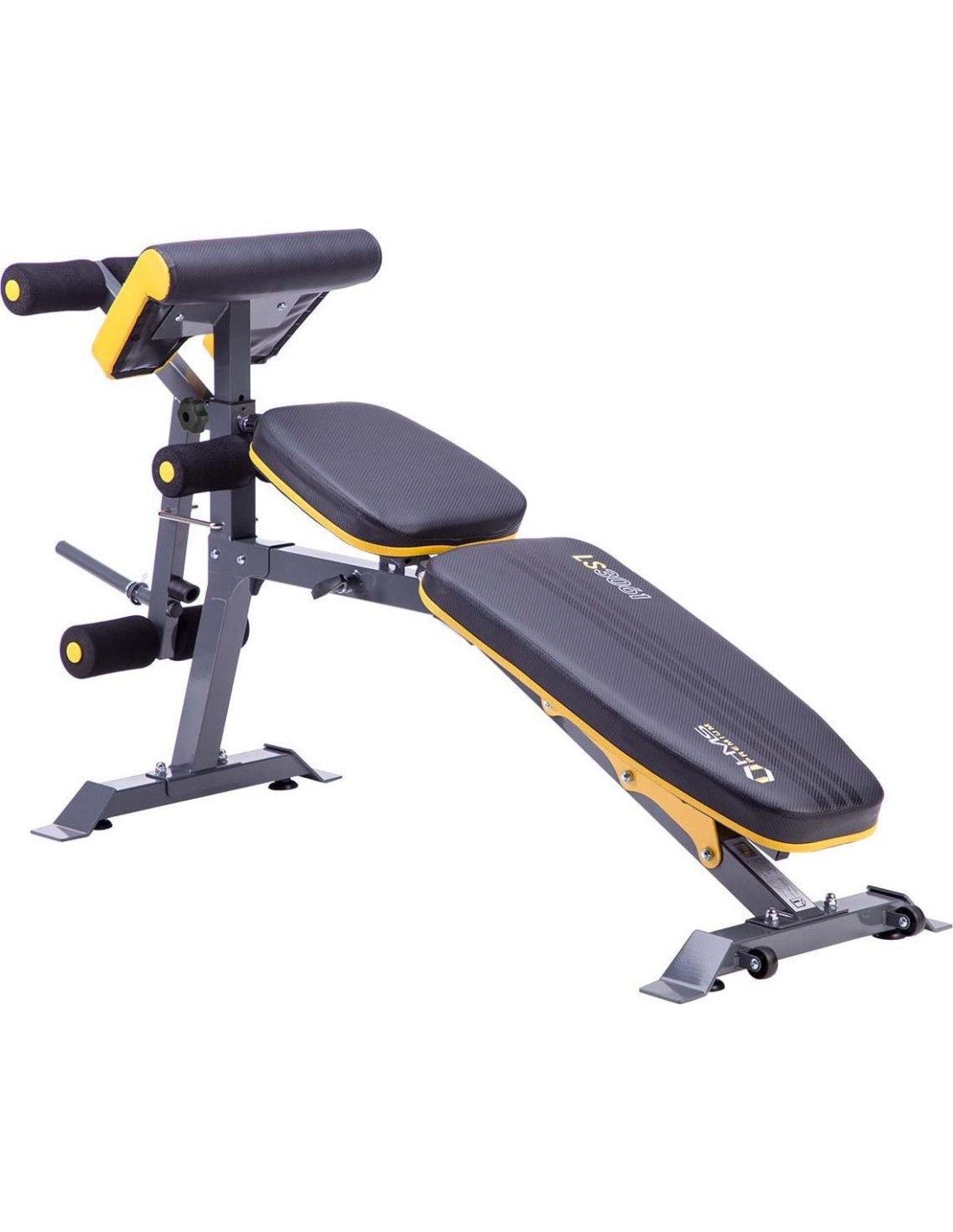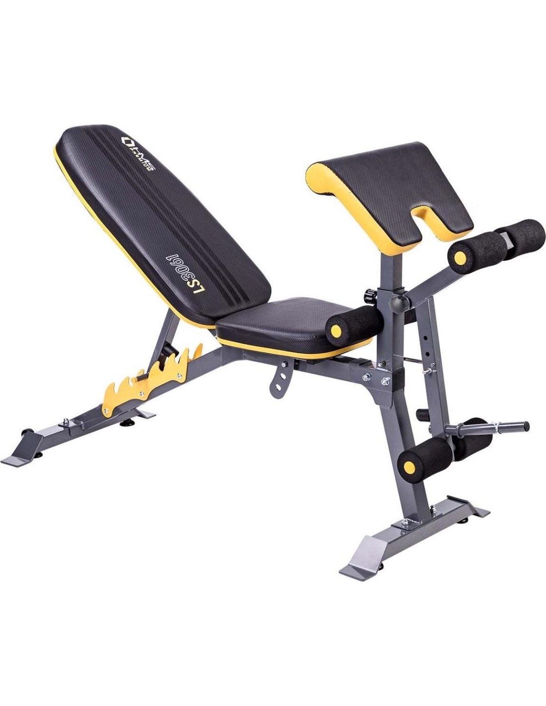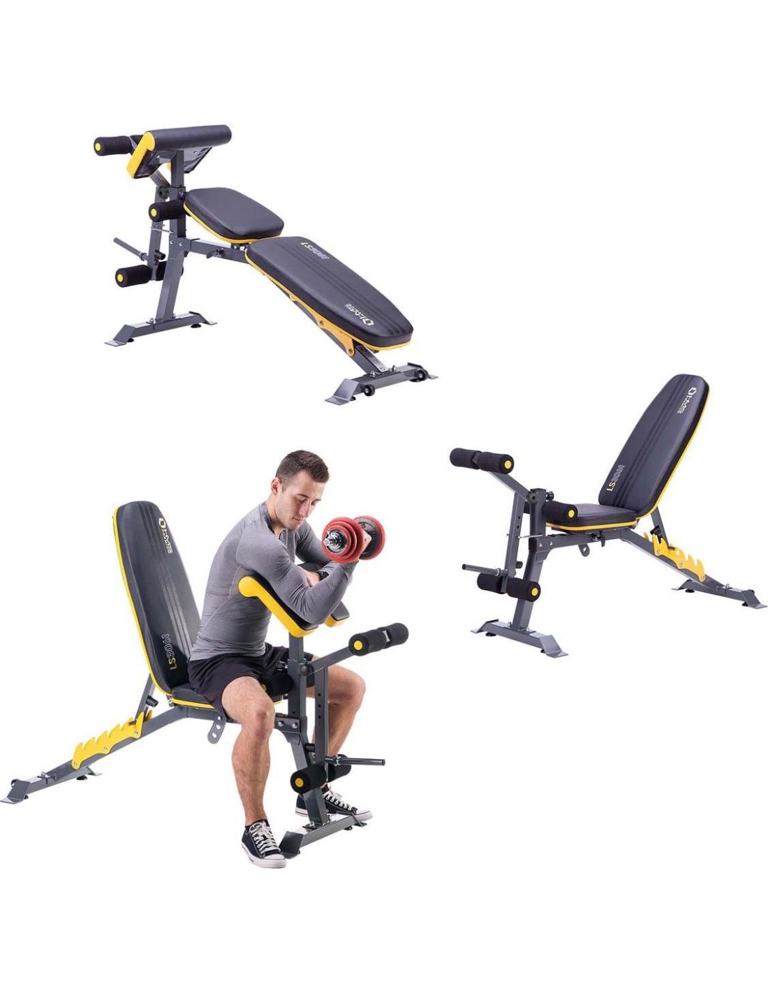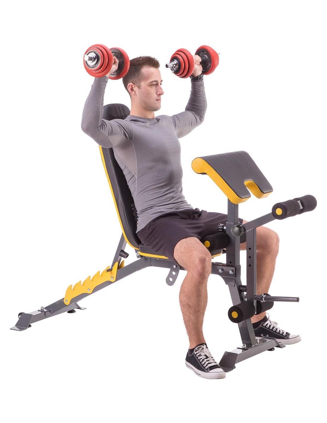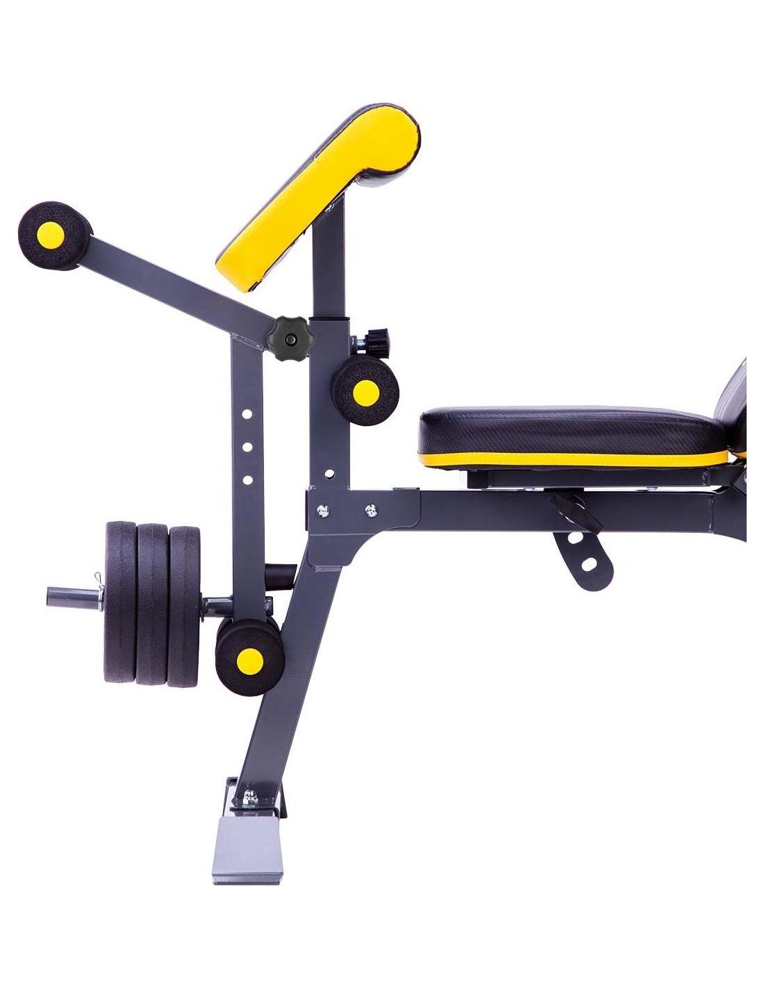 LS3061 HMS PREMIUM, to ławka z modlitewnikiem przeznaczona do treningu ze sztangą lub hantlami. Ławeczka 4 w 1 Ławeczka daje mnóstwo możliwości ćwiczeniowych. Jej budowa sprawia, że idealnie sprawdzi się ze stojakiem na sztangę, jak również do treningu z hantlami. Zakres regulacji kąta nachylenia oparcia, pozwoli w pełni rozwinąć ćwiczony mięsień. Możliwe jest wykonanie ćwiczeń na klatkę piersiową oraz barki. Ustawienie ławeczki skośnie w dół, pozwoli wykonać skłony czyli tzw. brzuszki. Uchwyt na nogi zagwarantuje wygodę i bezpieczeństwo podczas wykonywania tego ćwiczenia, angażującego mięśnie brzucha. Nie zapominajmy, że ławka posiada modlitewnik, powiększa to wachlarz możliwości ćwiczeniowych, o trening bicepsów. Wymontowując modlitewnik, zyskujemy możliwość wykonania treningu nóg. Na prasie do nóg możemy wykonać ćwiczenia mięśni czworogłowych uda. Ustawiając ławkę w pozycji poziomej, kładąc się na brzuchu i zahaczając stopy o uchwyt, wykonany uginanie nóg z obciążeniem, angażując tym samym mięsnie dwugłowe uda. Komfort i wygoda Solidna deska zapewnia stabilność oparcia, a miękka gąbka gwarantuje komfort i wygodę podczas ćwiczeń. Grubość gąbki jest bardzo istotna, ponieważ to ona ma bezpośredni wpływ na idealne ułożenie ciała. Nowoczesna karbonowa tapicerka, jest odporna na wilgoć i pot oraz zapobiega ślizganiu się ciała podczas ćwiczeń. Jest również bardzo przyjemna w dotyku. Wiele możliwości regulacji Ławka posiada szeroki zakres regulacji oparcia, siedziska oraz wysokości modlitewnika. Tak obszerne możliwości manewrowania ustawieniem ławki pozwolą swobodnie dopasować ją do wzrostu użytkownika oraz do konkretnego ćwiczenia. Stylowy design Ławka jest nie tylko wygodna i funkcjonalna, ale także stylowa. Połączenie czarnego karbonowego materiału z żółtymi haftowanymi elementami, daje świetny efekt wizualny, który jest charakterystyczny dla marki HMS PREMIUM. Model LS3061 HMS PREMIUM, to obowiązkowa pozycja na liście wyposażenia domowej siłowni.