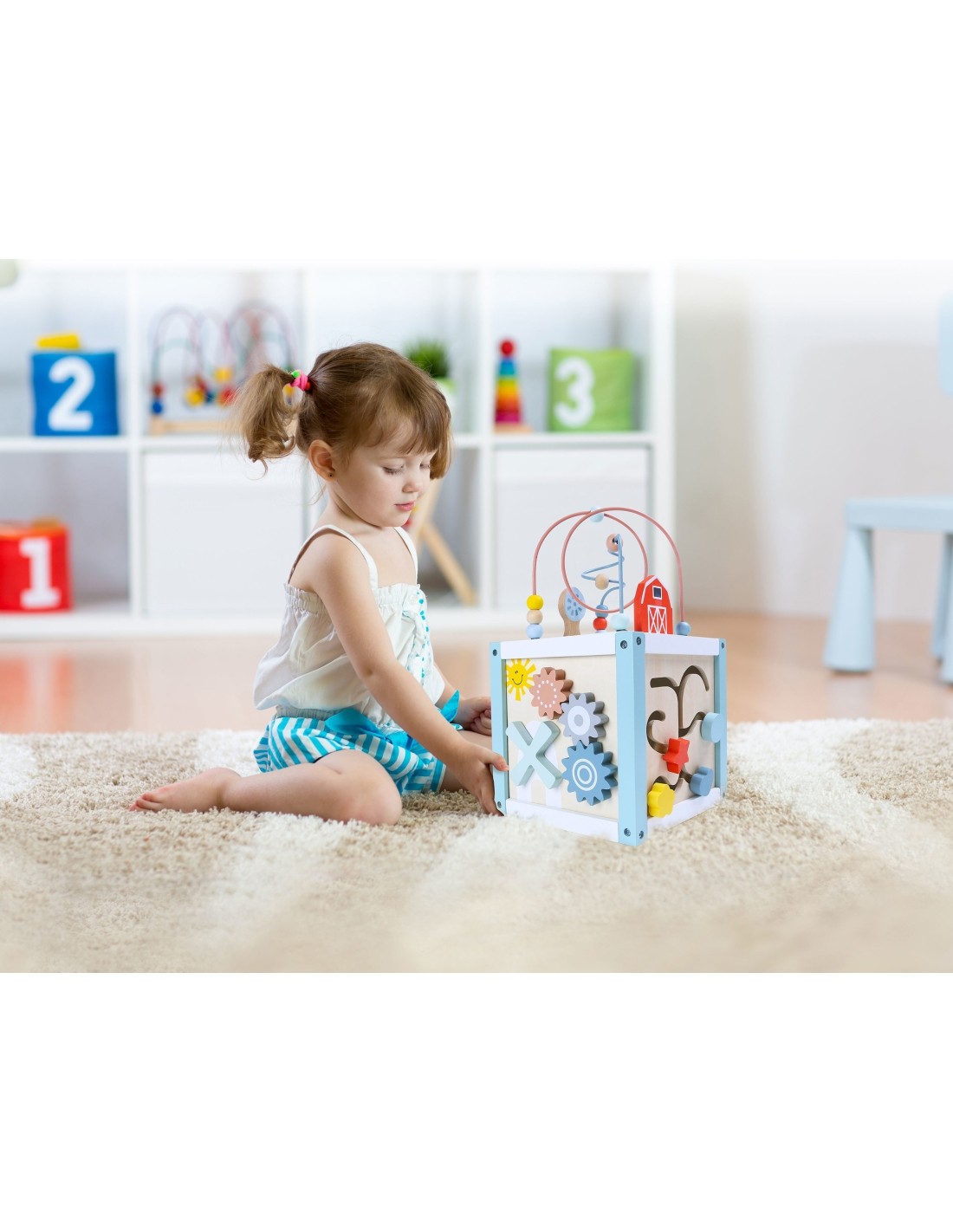 Każdy rodzic pragnie, aby jego dziecko rozwijało się w odpowiedni i zrównoważony sposób. Zabawka edukacyjna marki ECOTOYS, umożliwi Twojemu dziecku rozwój na wielu płaszczyznach, a wszystko to dzięki swojej budowie, w której każda ze ścian ma zupełnie inną funkcjonalność i charakter.