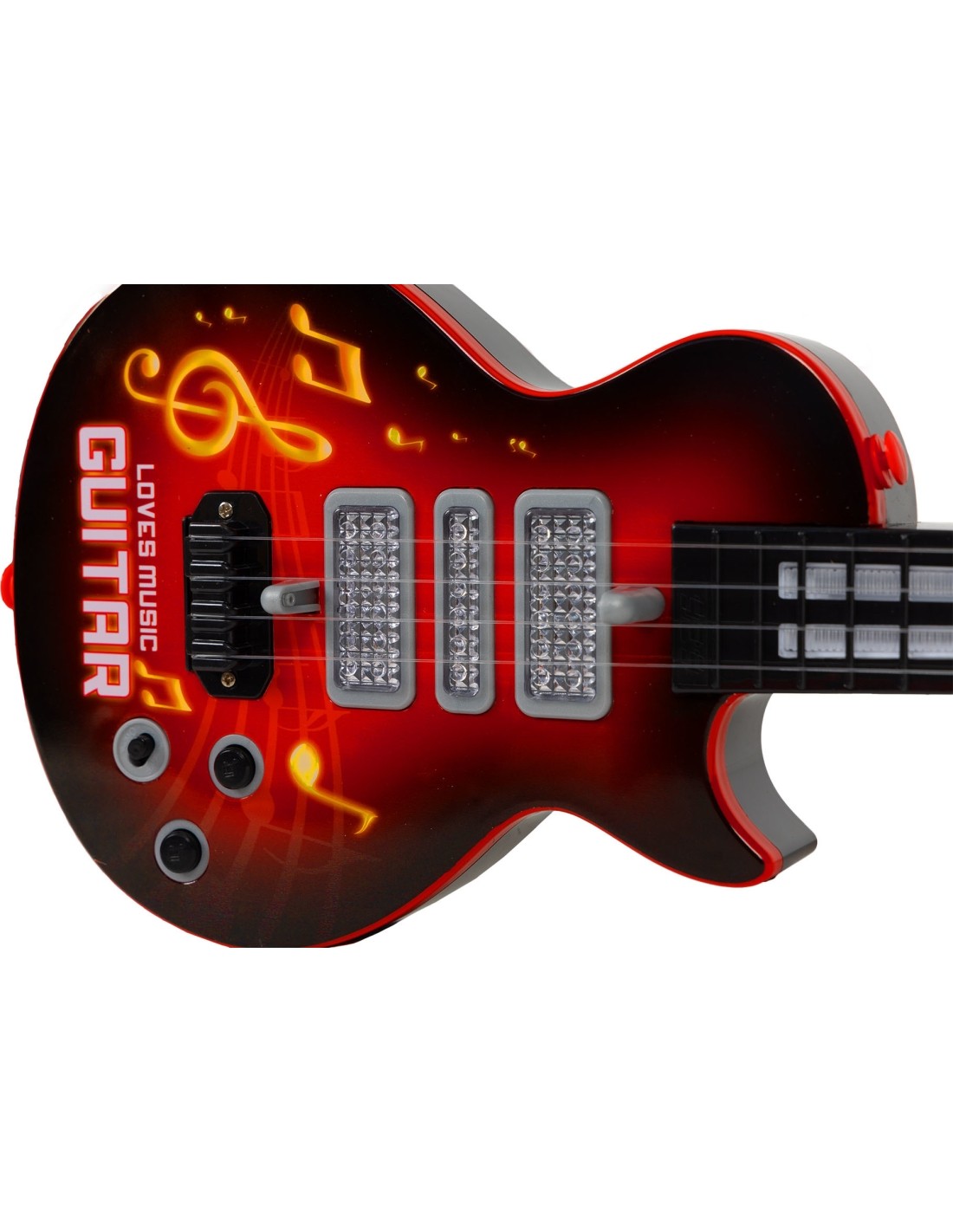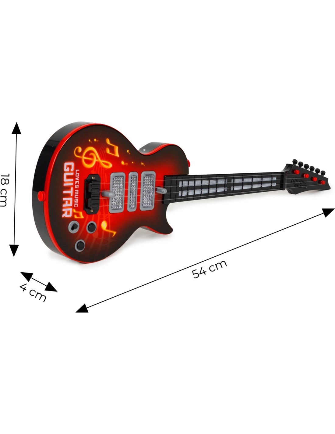 Jedną z najciekawszych funkcji tej gitary jest wbudowany czujnik podczerwieni, który sprawia, że światło tańczy w rytm palca poruszającego się po żyłkowych strunach instrumentu. To nie tylko dodaje elementu wizualnego do muzyki, ale także pomaga dzieciom rozwijać swoje umiejętności rytmiczne w sposób zabawny i interaktywny.