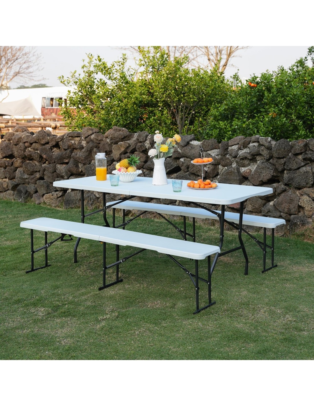 One of the key advantages of the NC1618 is its robust and well-designed construction. The tabletop is made of durable PVC with a smooth surface, which not only looks good, but is also dirt-resistant, easy to clean and weatherproof. The reinforced steel frame ensures the table's stability even under heavy loads. The maximum load capacity of up to 150 kg allows for safe use of the table when serving food, storing dishes or setting up equipment during events.